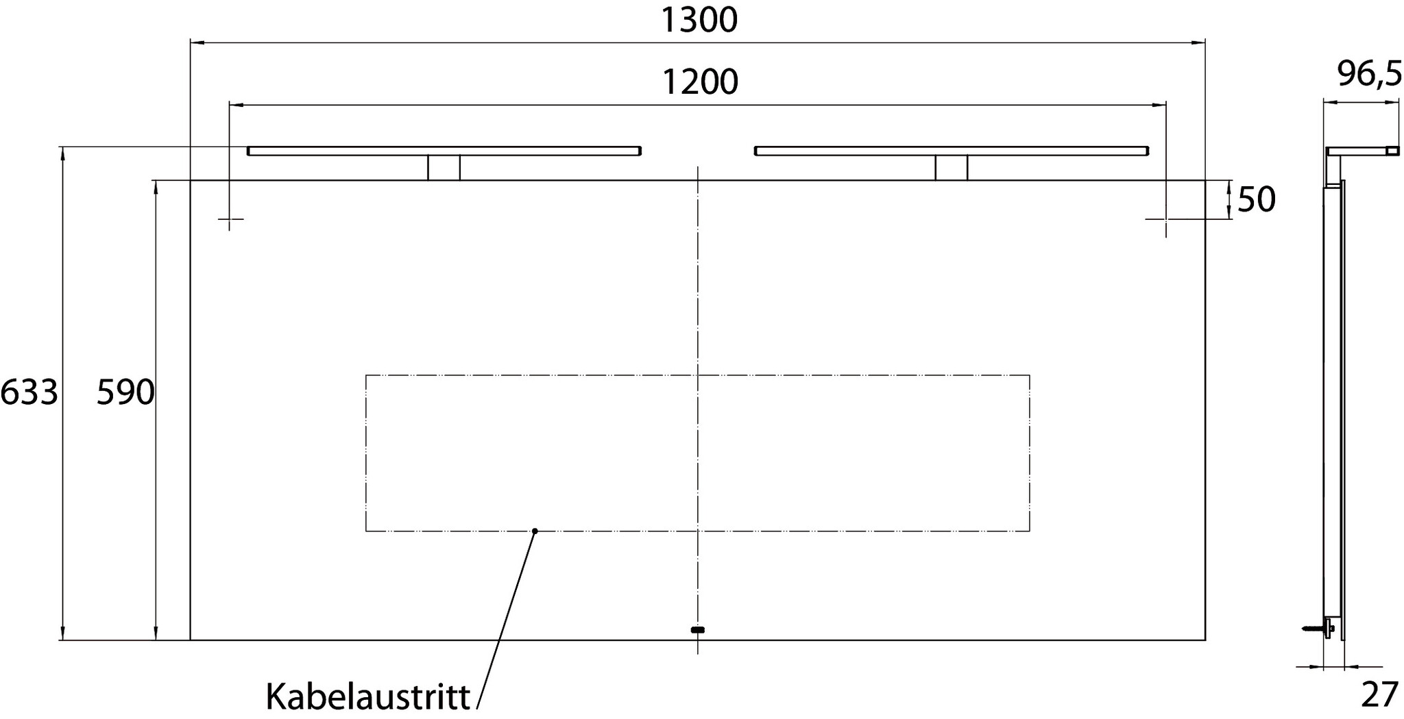 Mee spiegel, LED, aan/uit sensor, B1300xH590mm EMCO