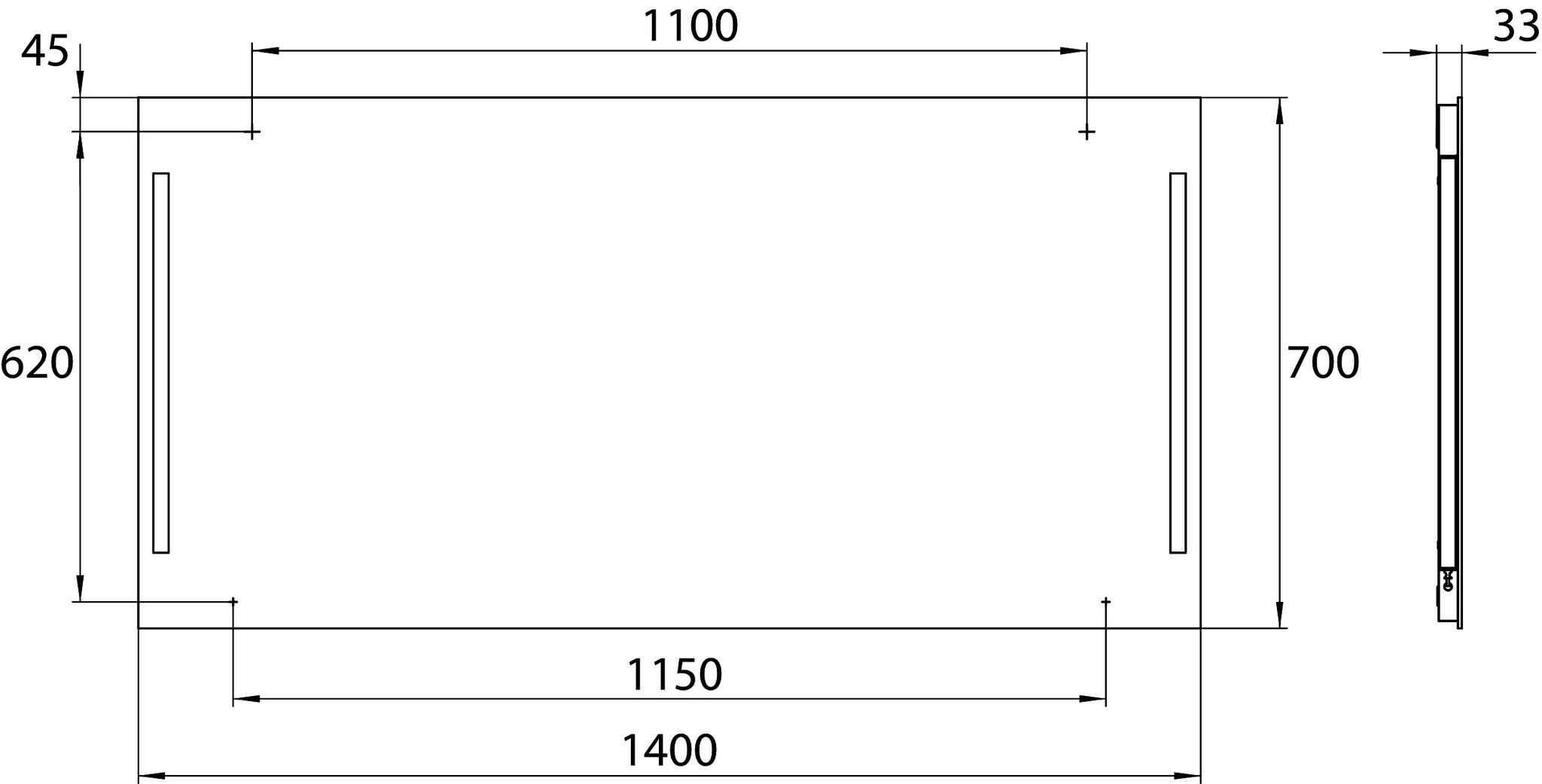 Lichtspiegel Premium LED (4.000K) 1200x700mm zonder schakelaar EMCO