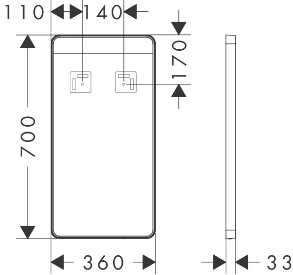 Spiegel horiz. LED 360/30 IR Sensor mat zwart Xarita Lite Q hansgrohe