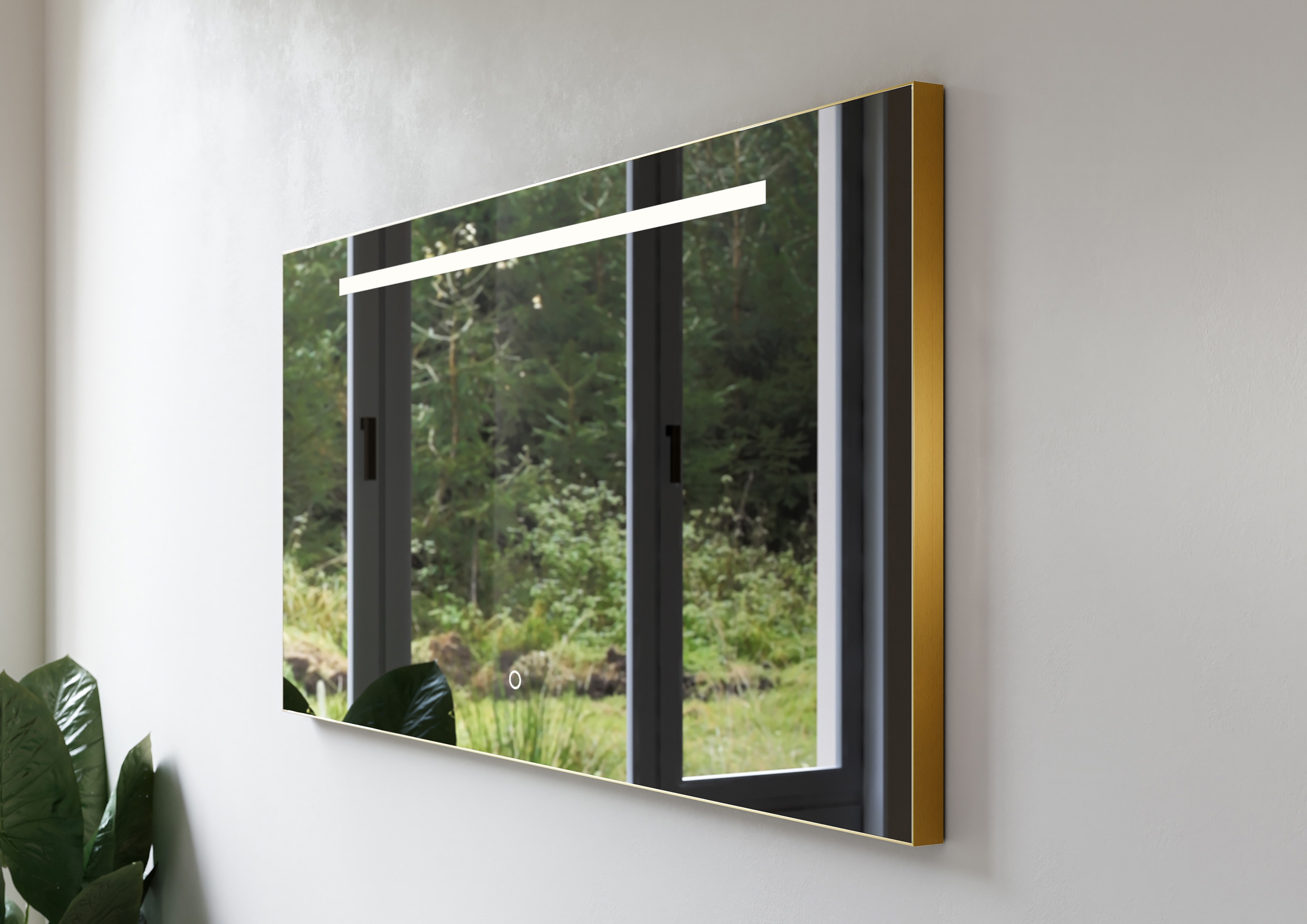 Spiegel Metallic Line Rectangle brushed Brass 100x60cm met ledverlichting + verwarming LoooX
