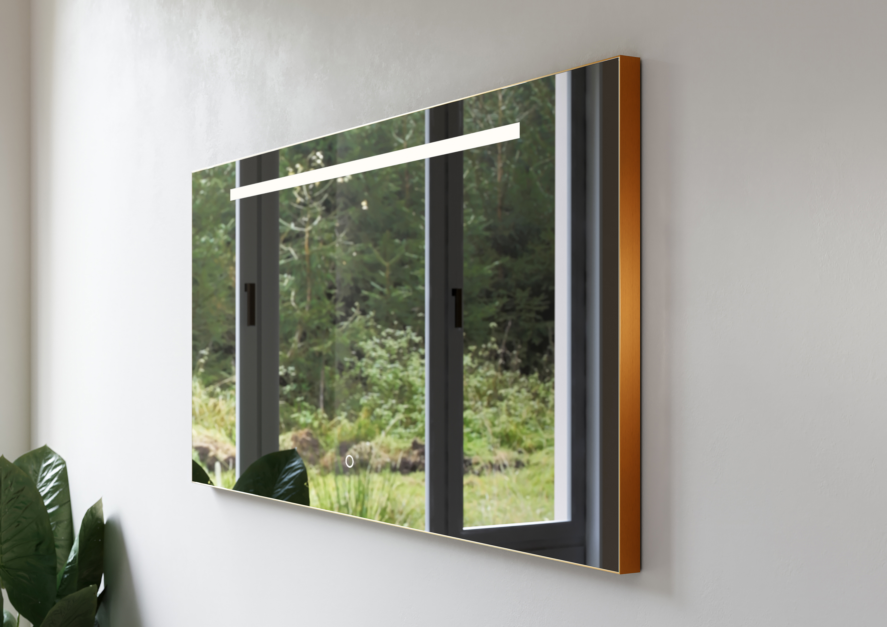 Spiegel Metallic Line Rectangle brushed Copper 140x60cm met ledverlichting + verwarming LoooX