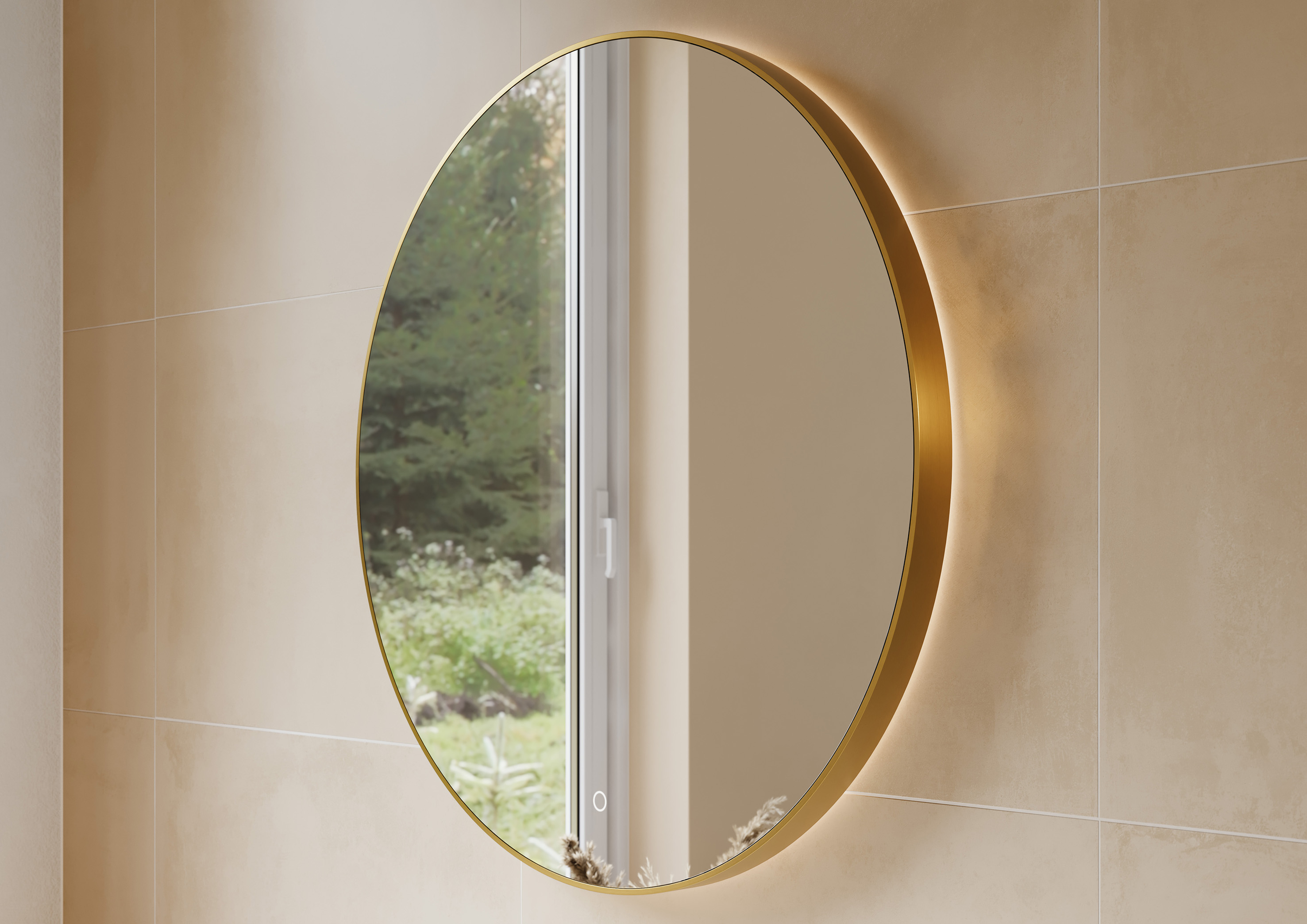 Spiegel Metallic Line Round brushed Brass Ø60cm met led-verlichting + verwarming LoooX