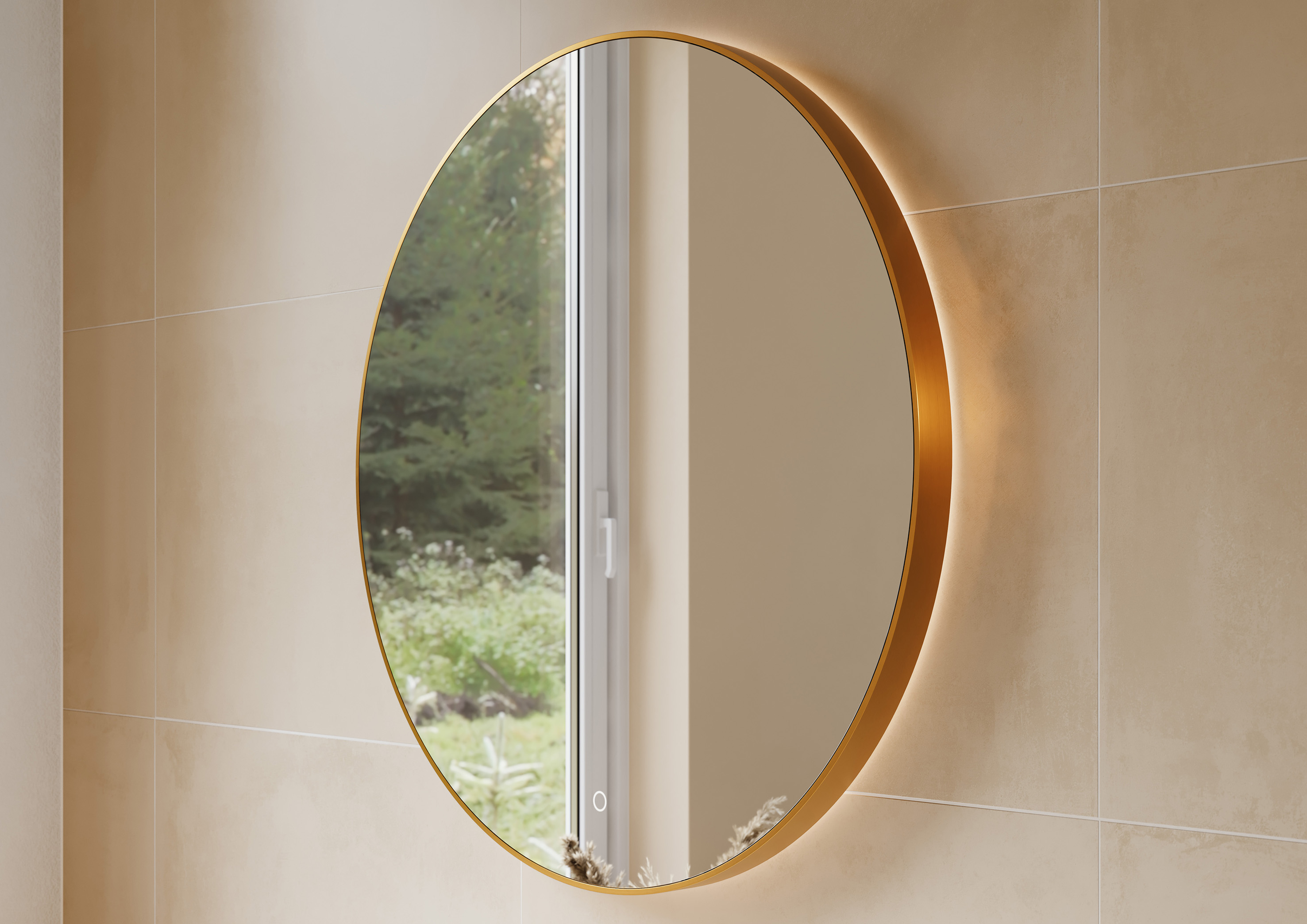 Spiegel Metallic Line Round brushed Copper Ø100cm met led-verlichting + verwarming LoooX