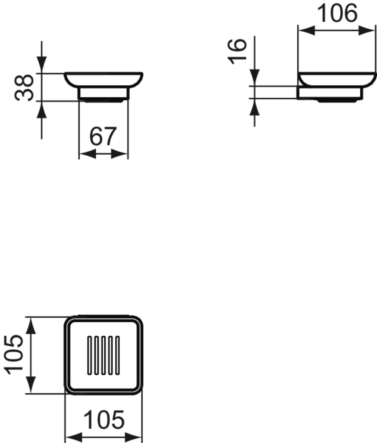 zeepschaal rechthoekig van gesat. glas m houdsilver storm (rvs look) T4 Ideal Standard