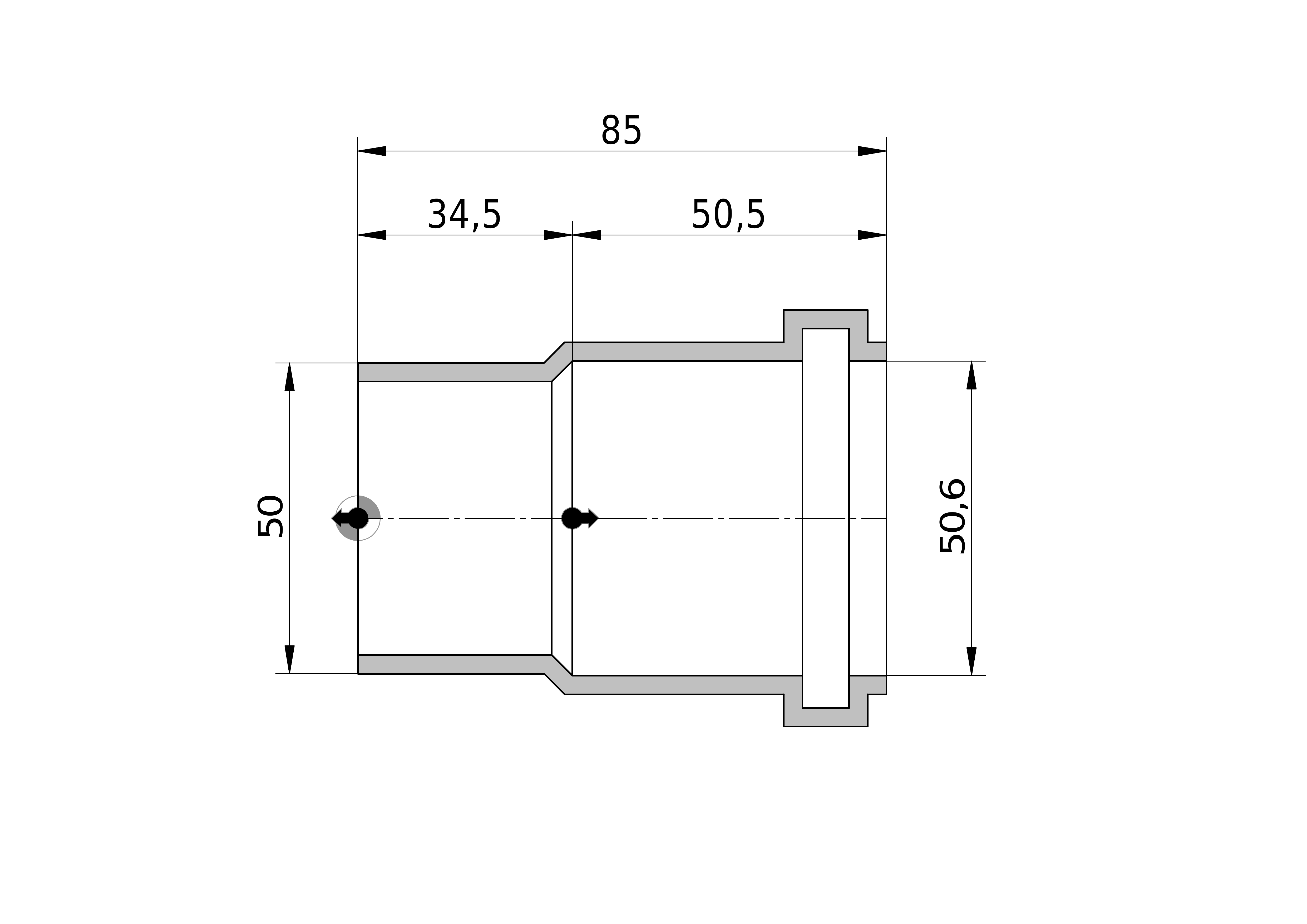 - Uitwendige buisdiameter aansluiting 1: 50 mm