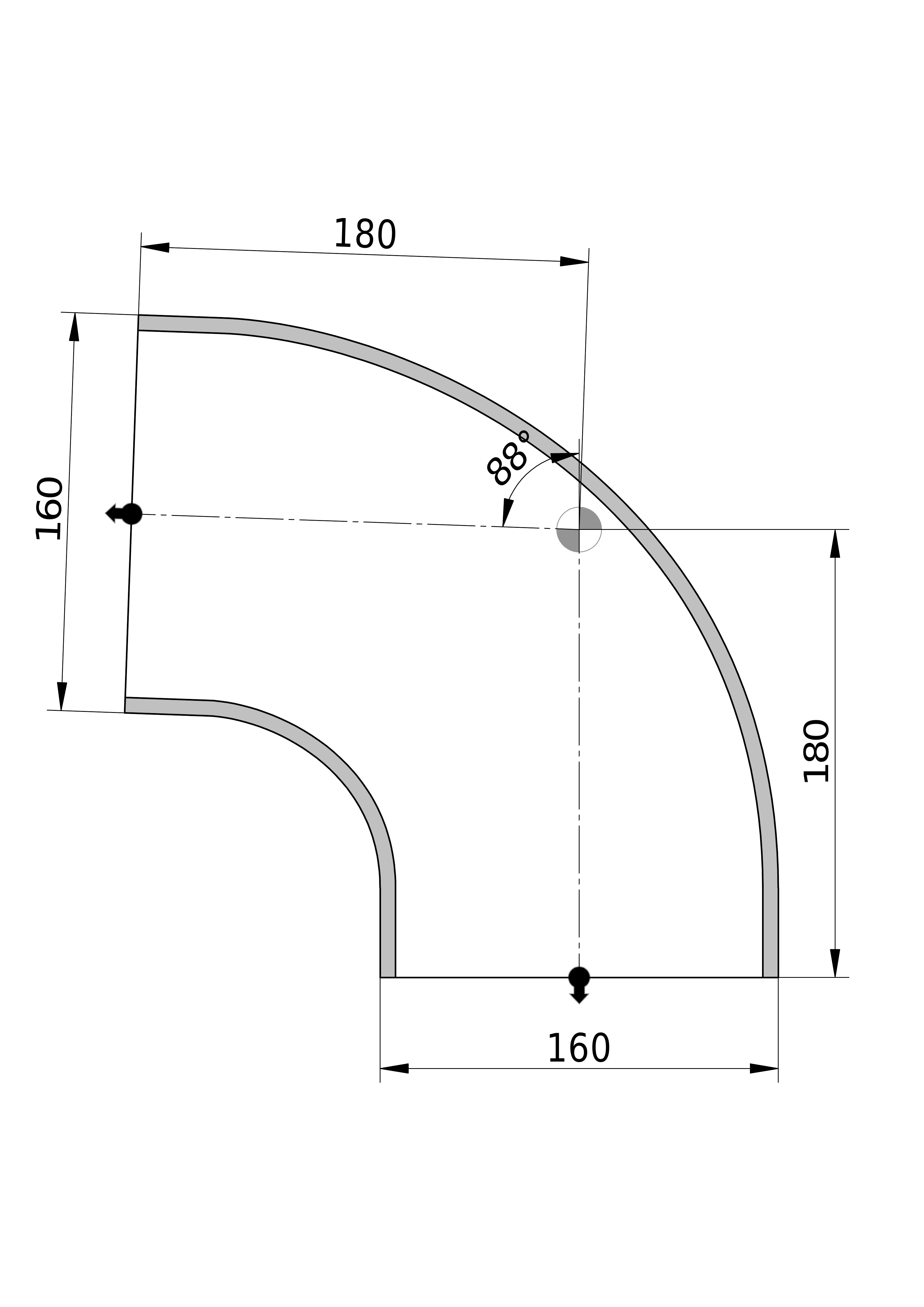 - Uitwendige buisdiameter aansluiting 2: 160 mm