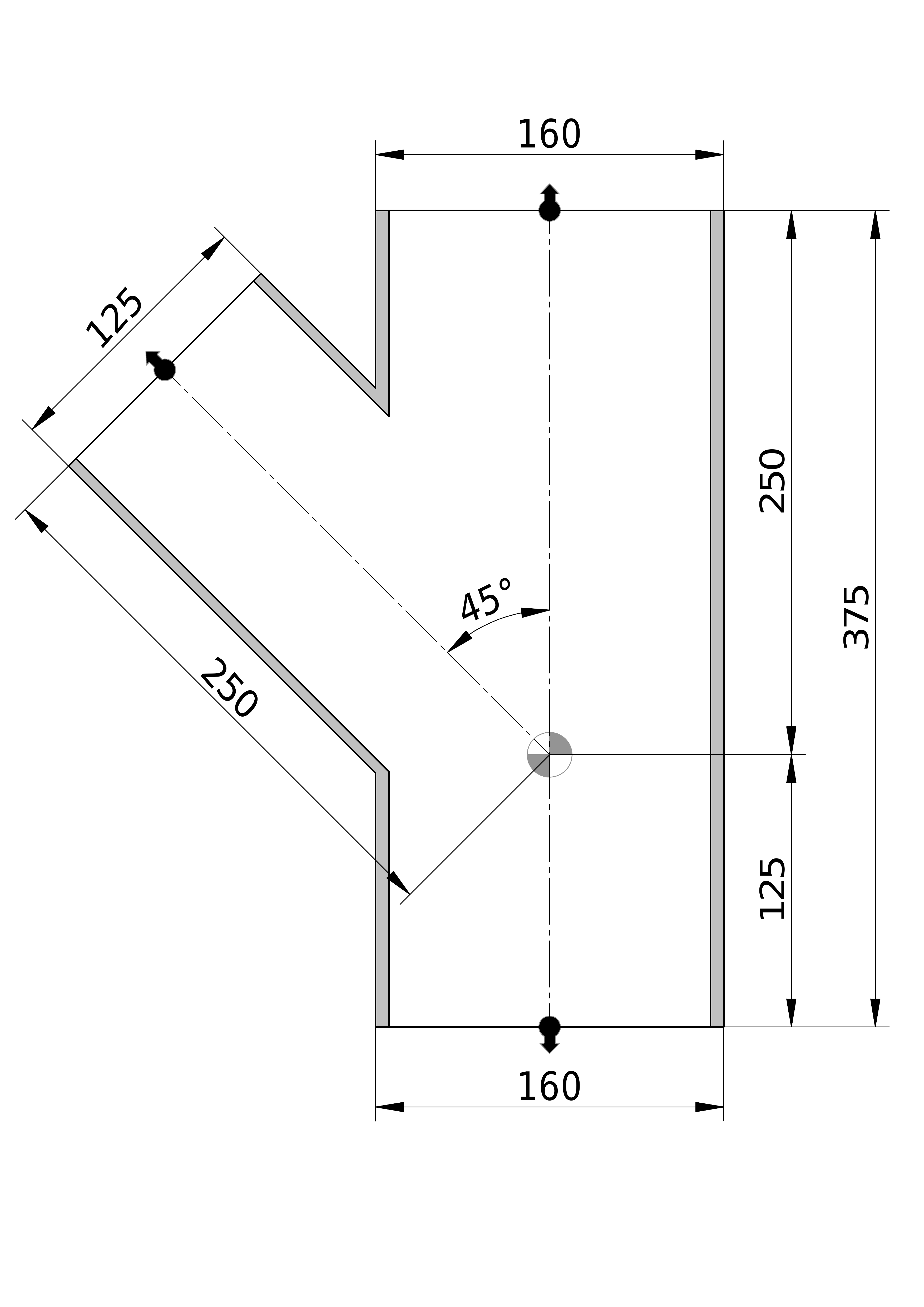- Uitwendige buisdiameter aansluiting 2: 160 mm
