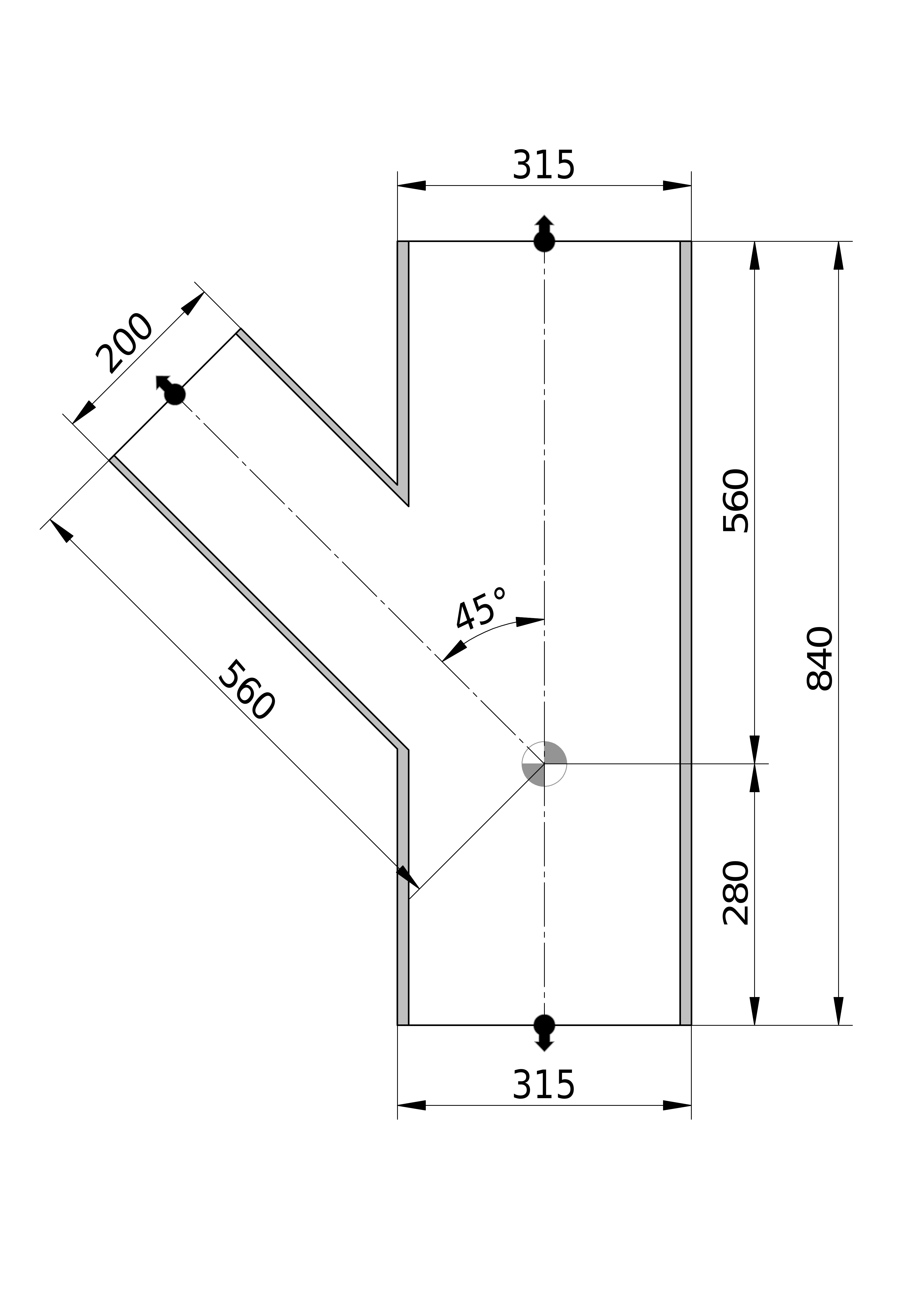 - Uitwendige buisdiameter aansluiting 1: 315 mm