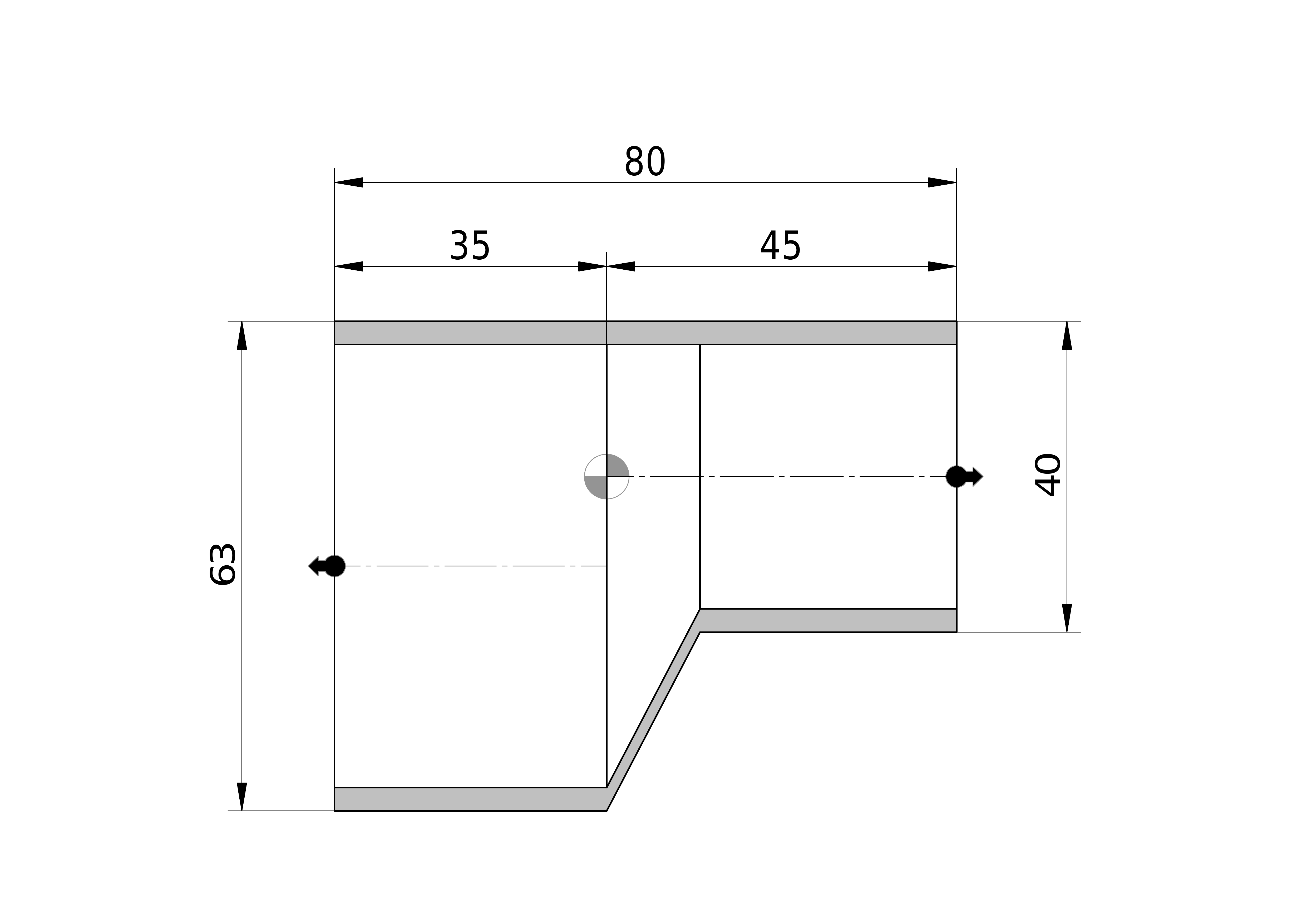 - Uitwendige buisdiameter aansluiting 1: 63 mm