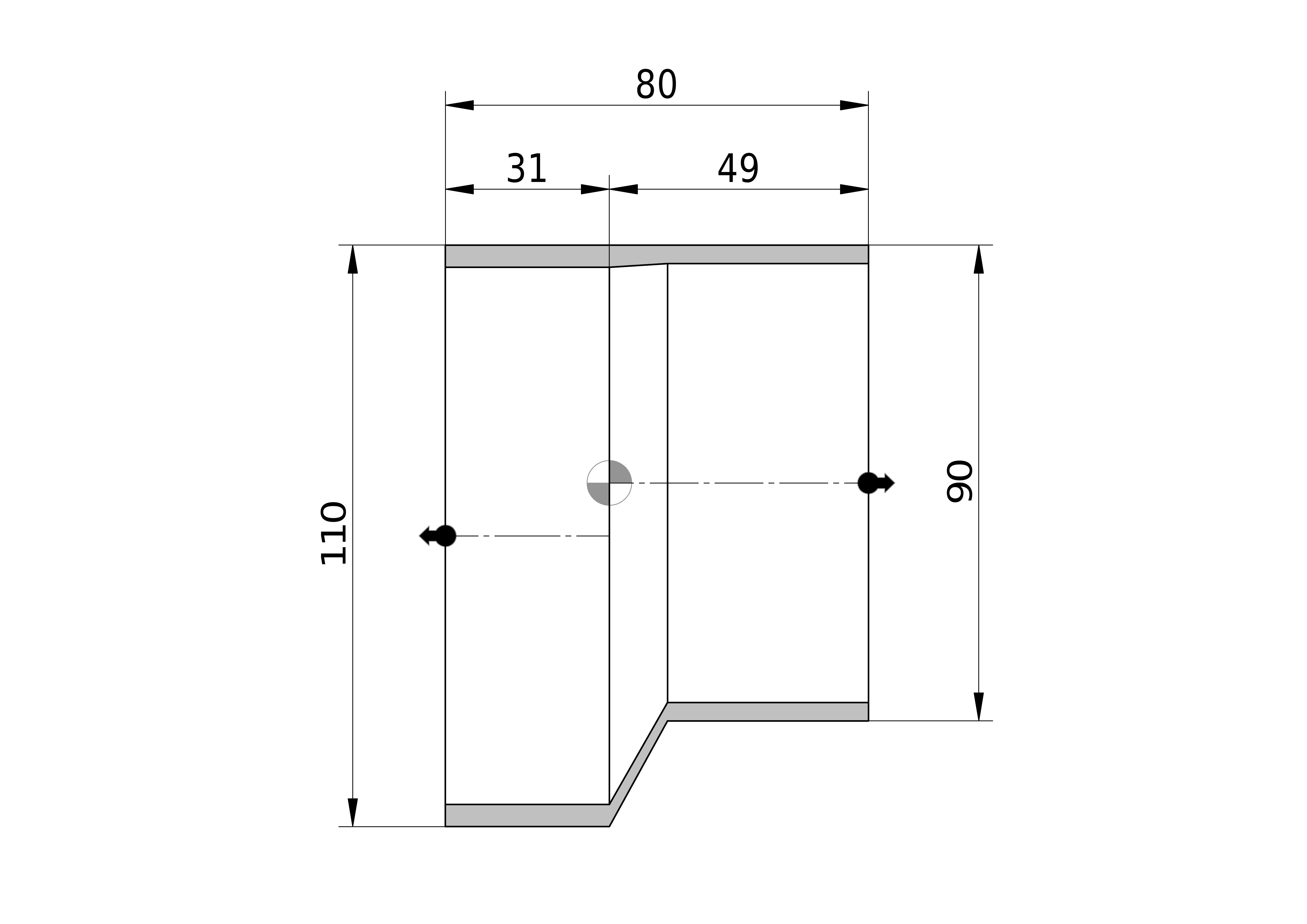 - Nom. diameter aansluiting 2: DN 90