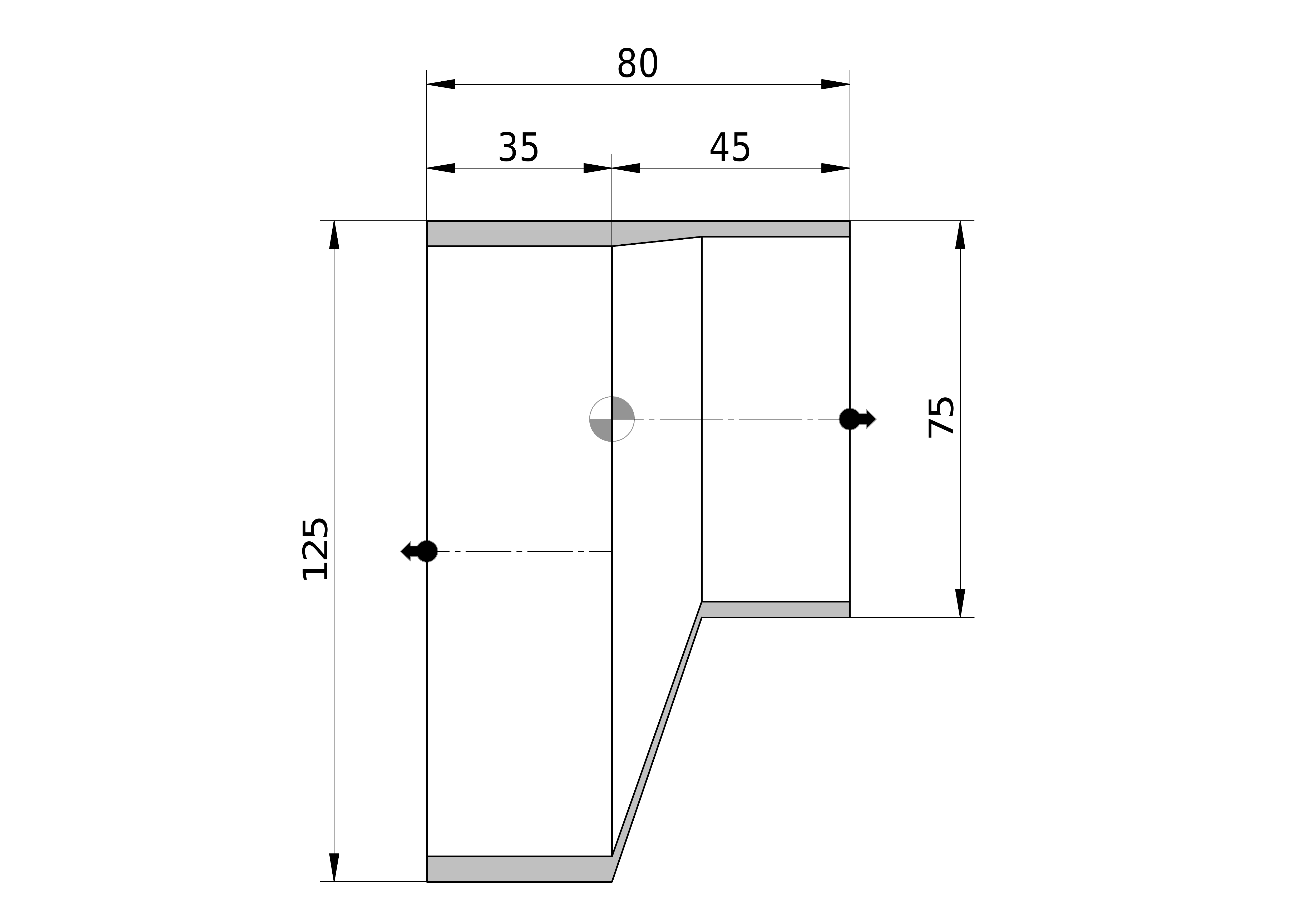 • Uitwendige buisdiameter aansluiting 1: 125 mm