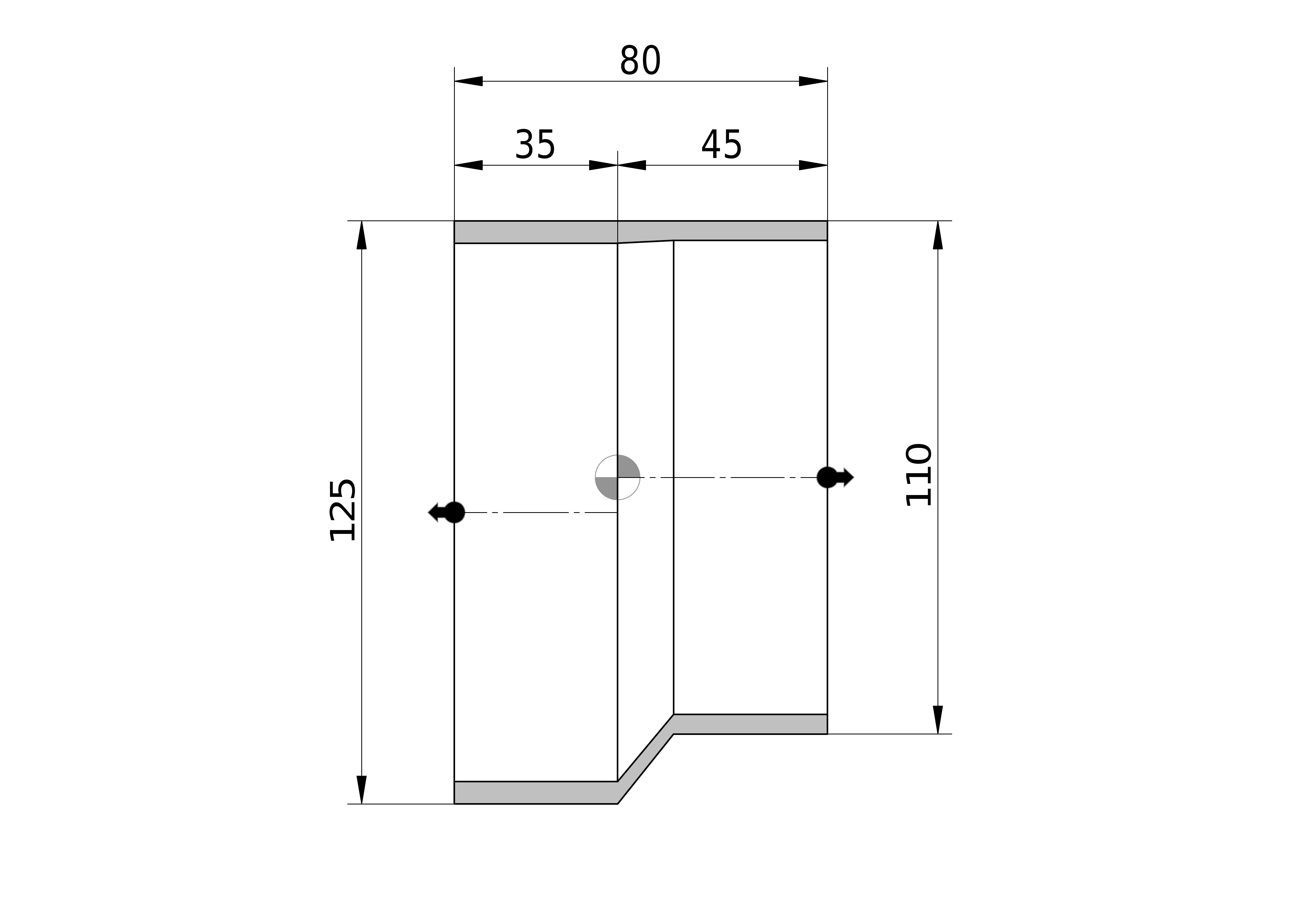 • Uitwendige buisdiameter aansluiting 1: 125 mm