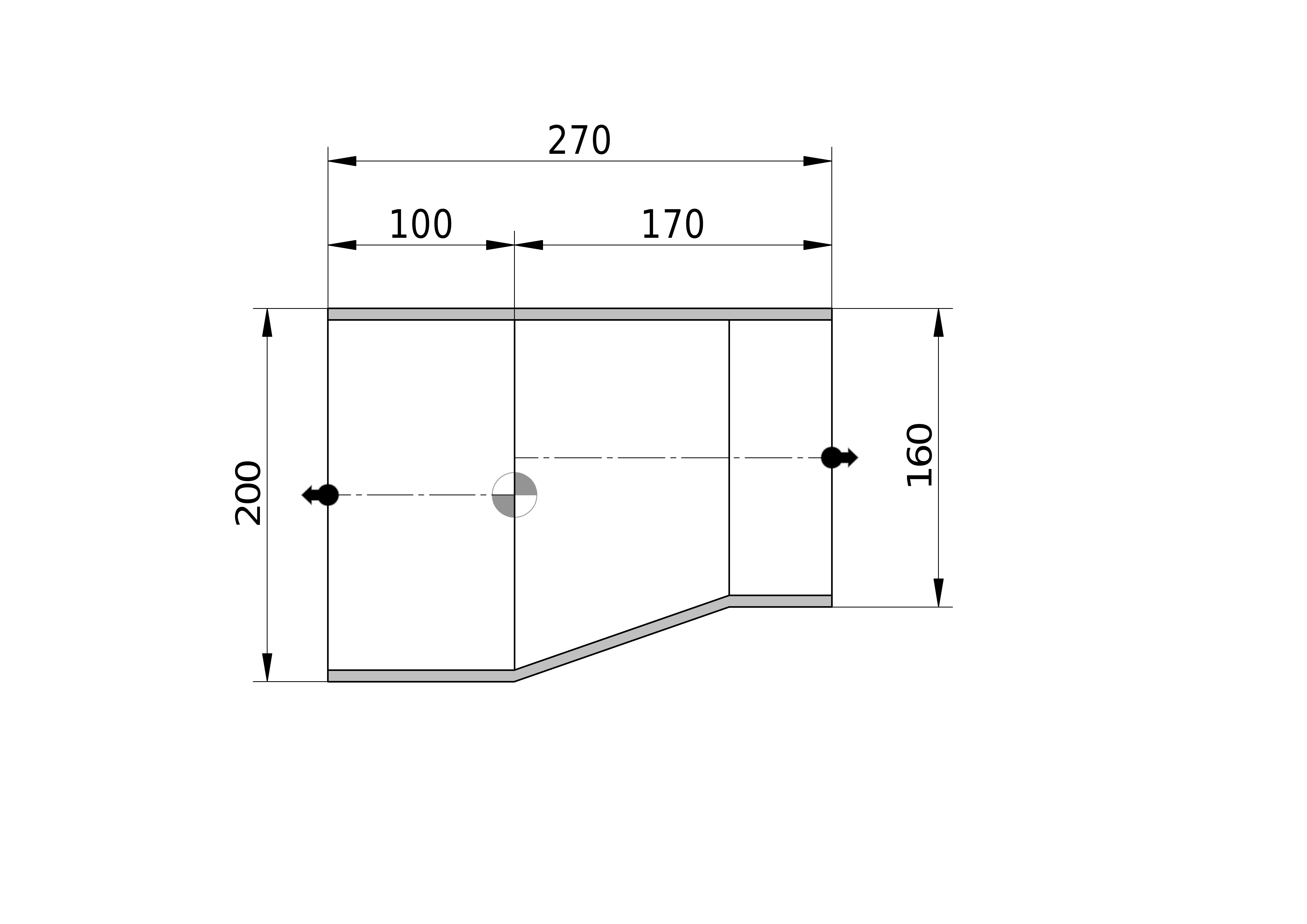 - Uitwendige buisdiameter aansluiting 2: 160 mm