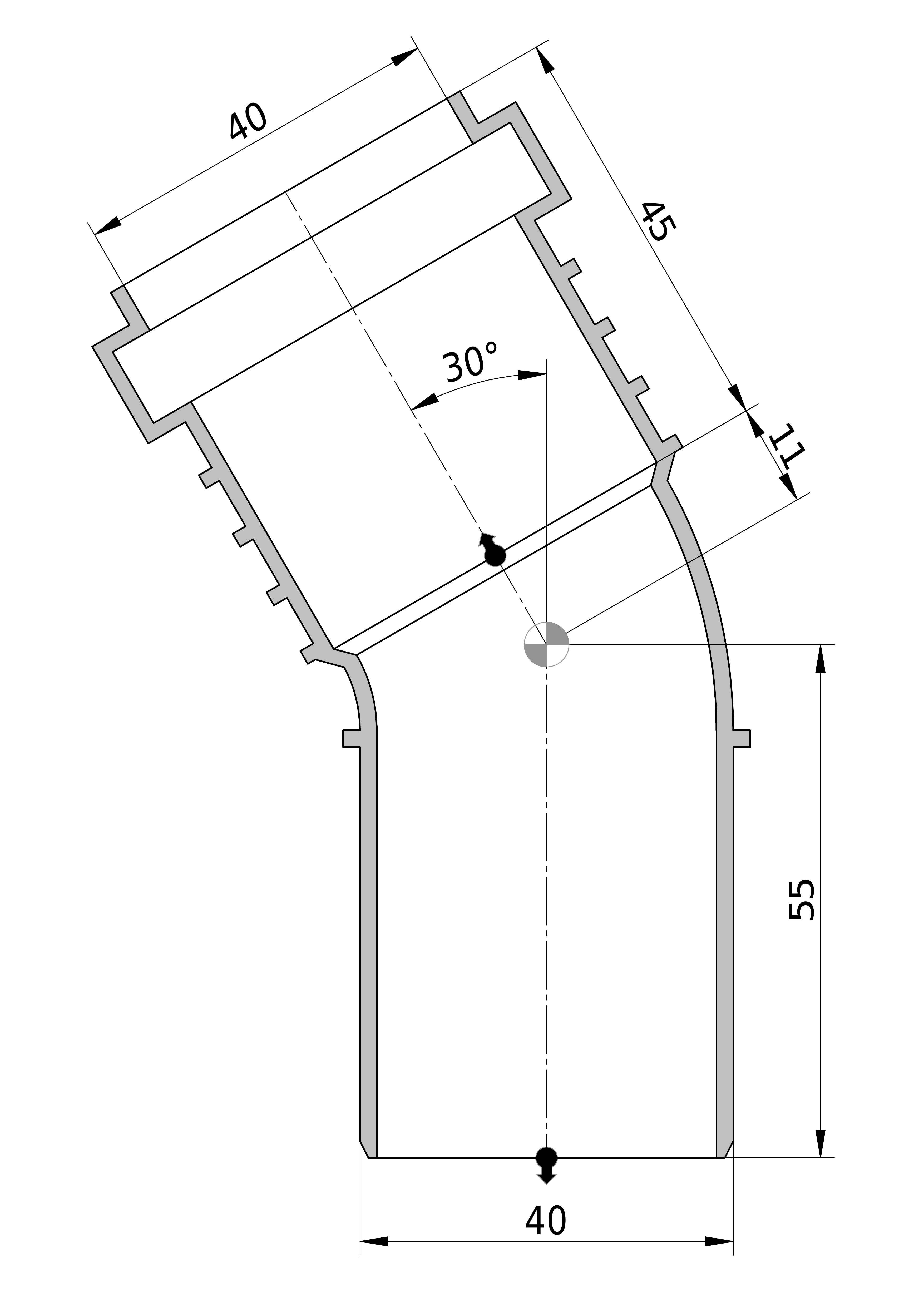 Sitech+ geluidsarm PP bocht 30° zwart 40mm Wavin