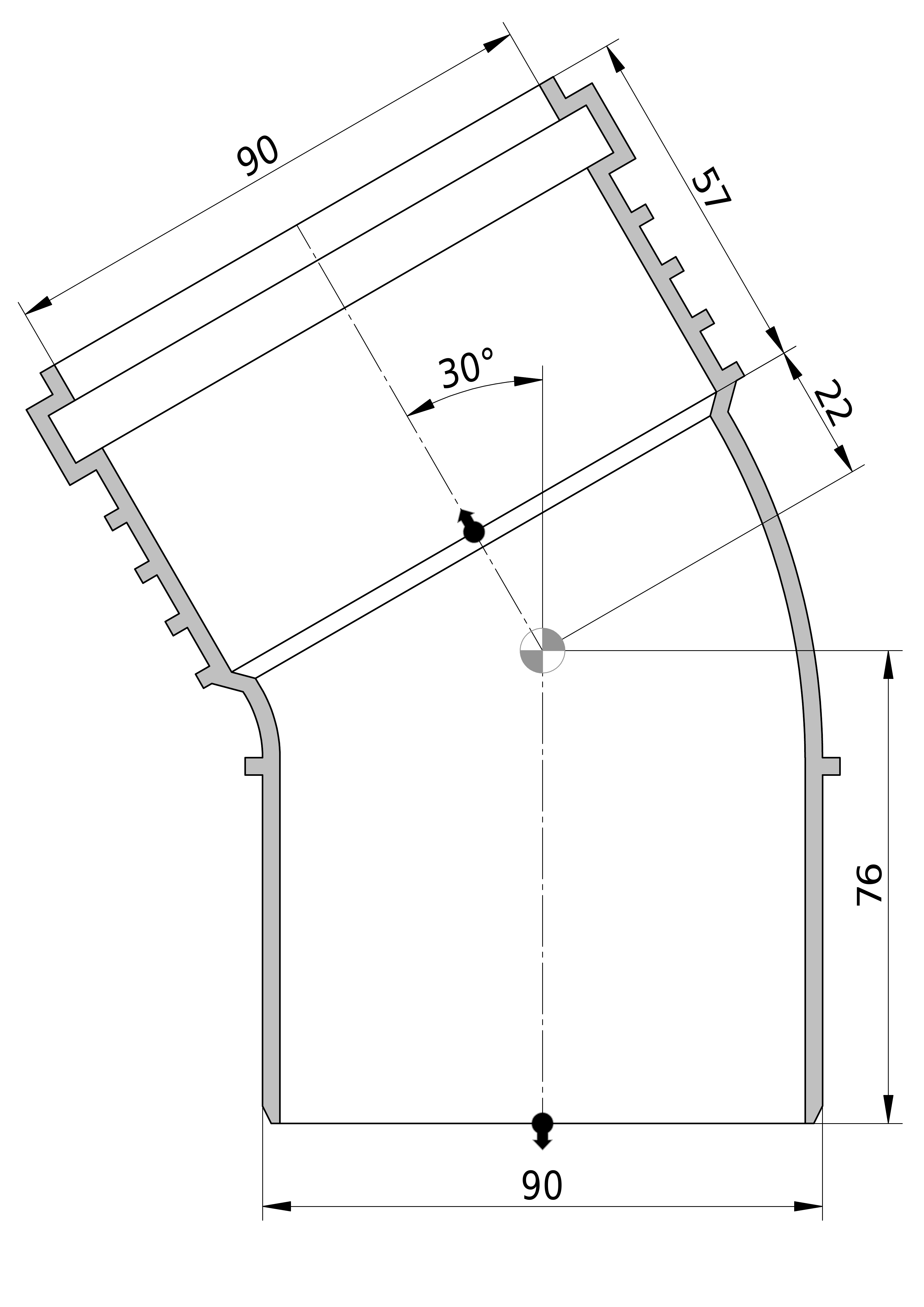 - Bochthoek: 30 °