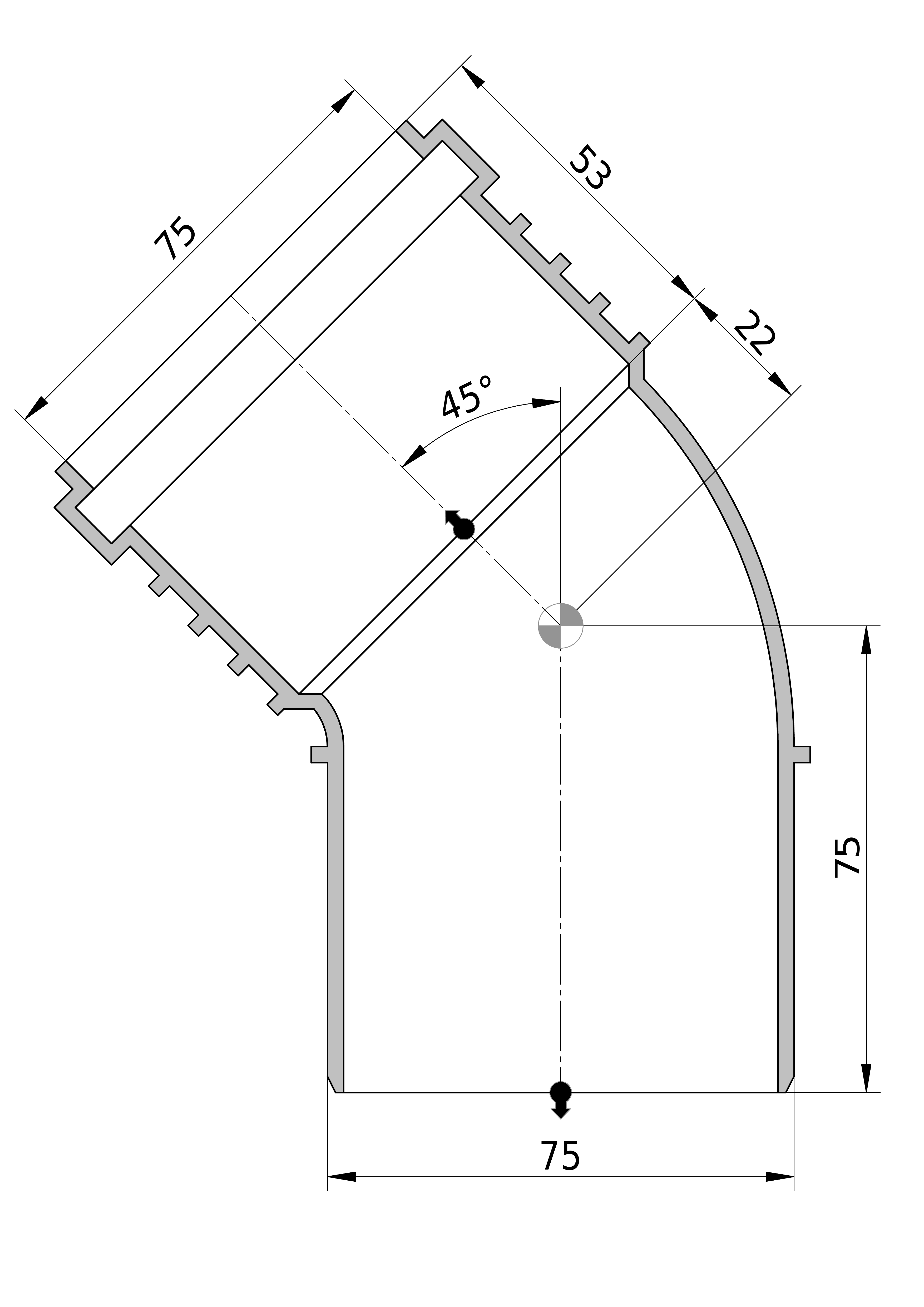 • Uitwendige buisdiameter aansluiting 1: 75 mm