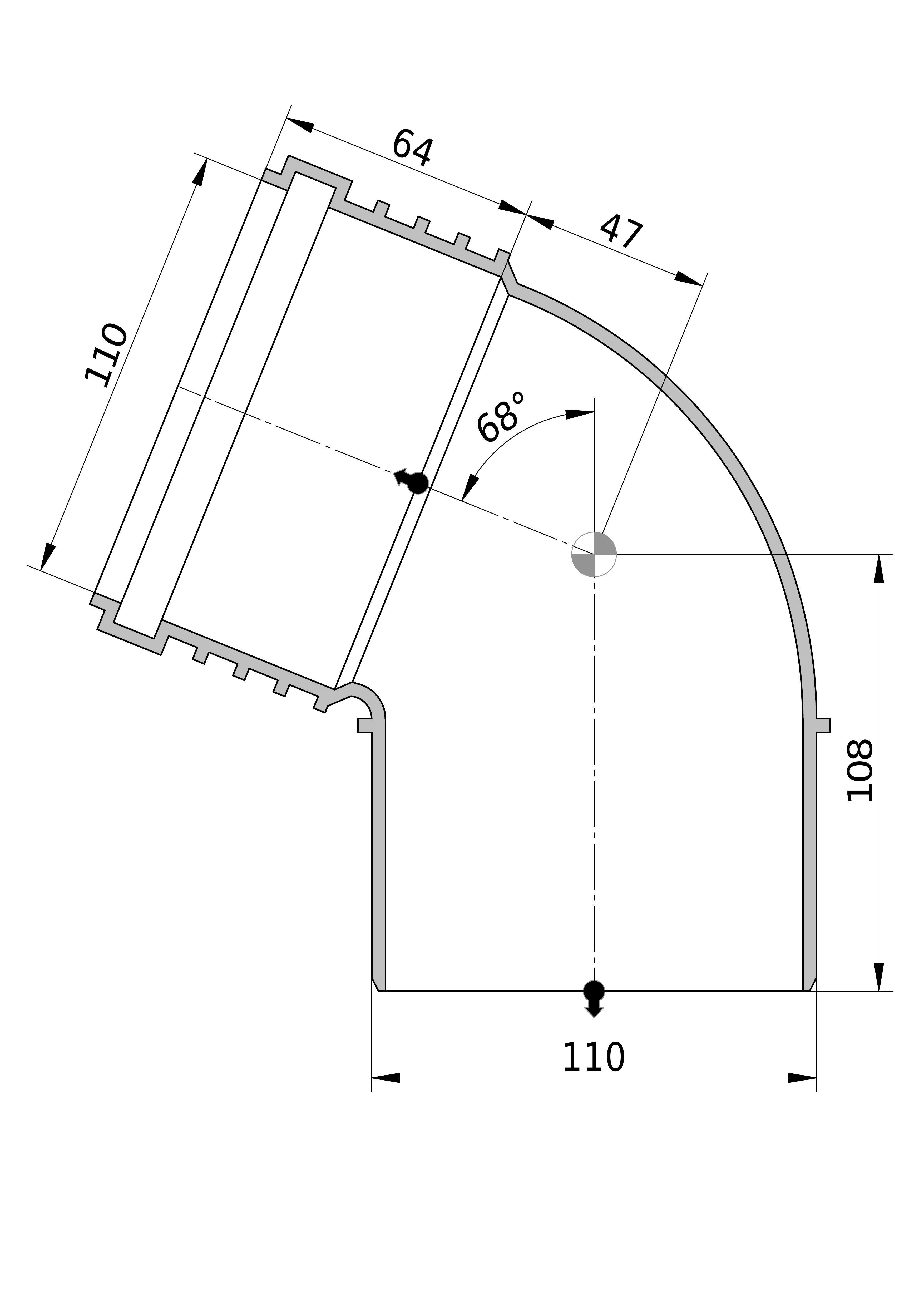 • Uitwendige buisdiameter aansluiting 1: 110 mm