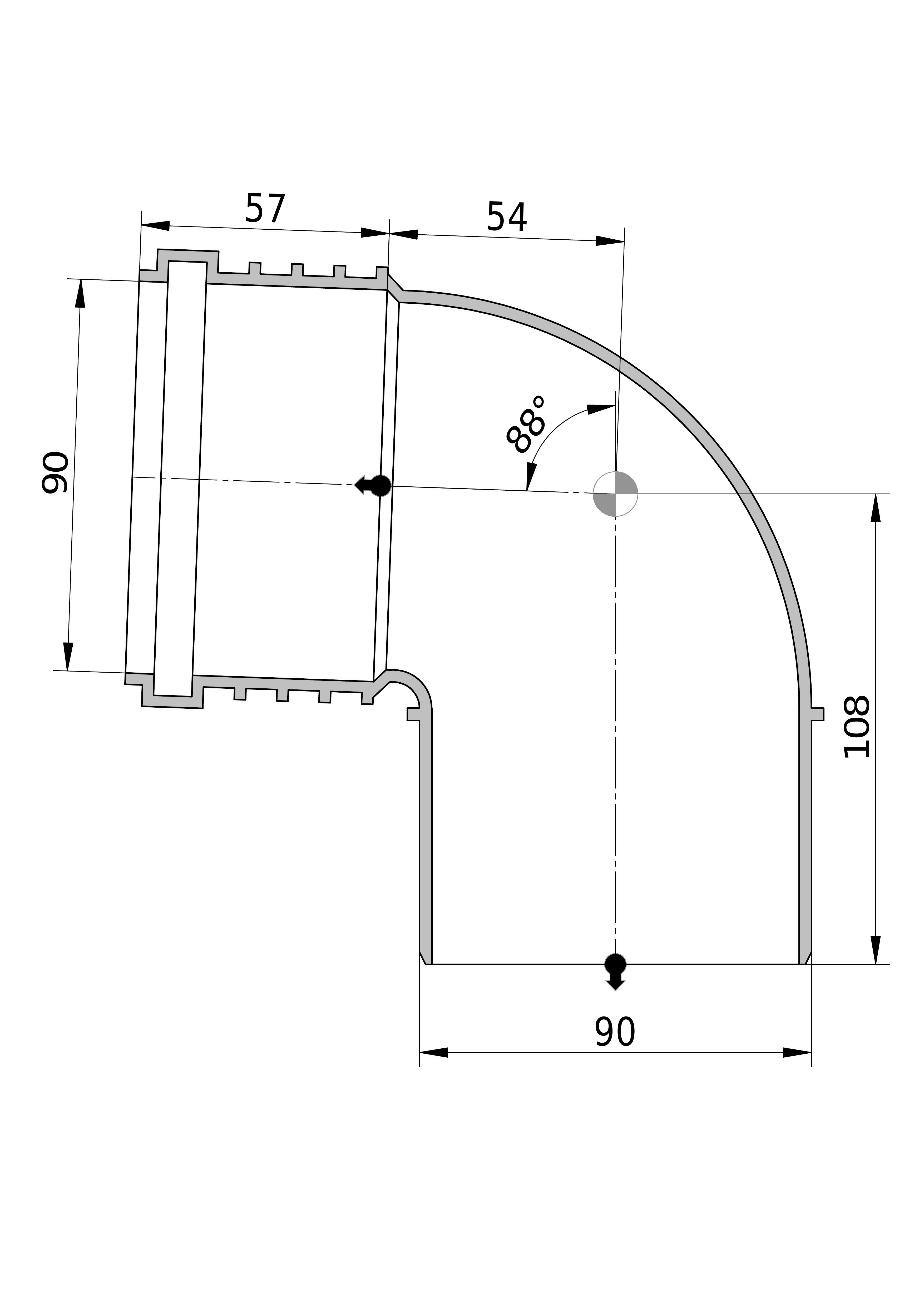 - Uitwendige buisdiameter aansluiting 2: 90 mm