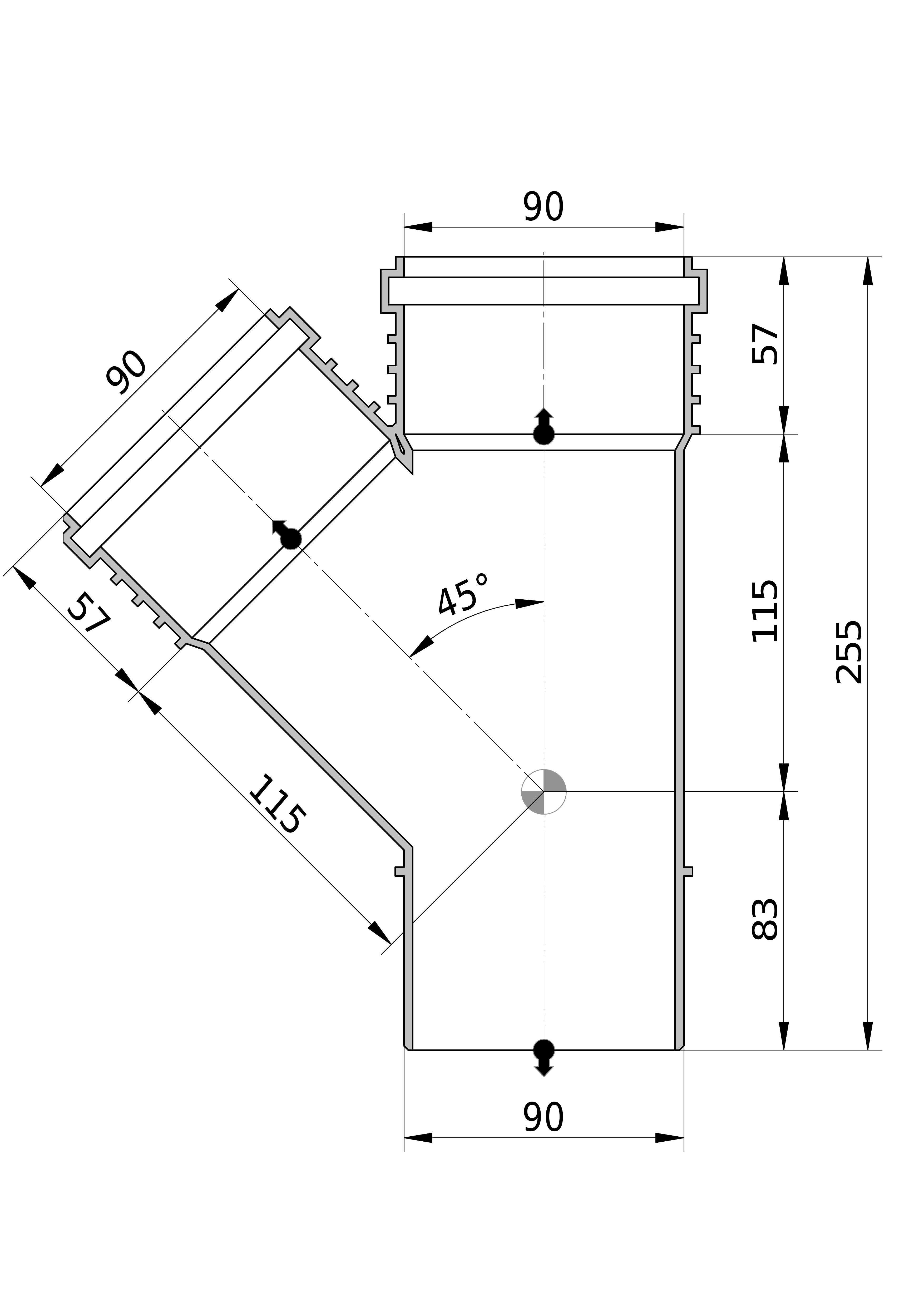 - Uitwendige buisdiameter aansluiting 2: 90 mm