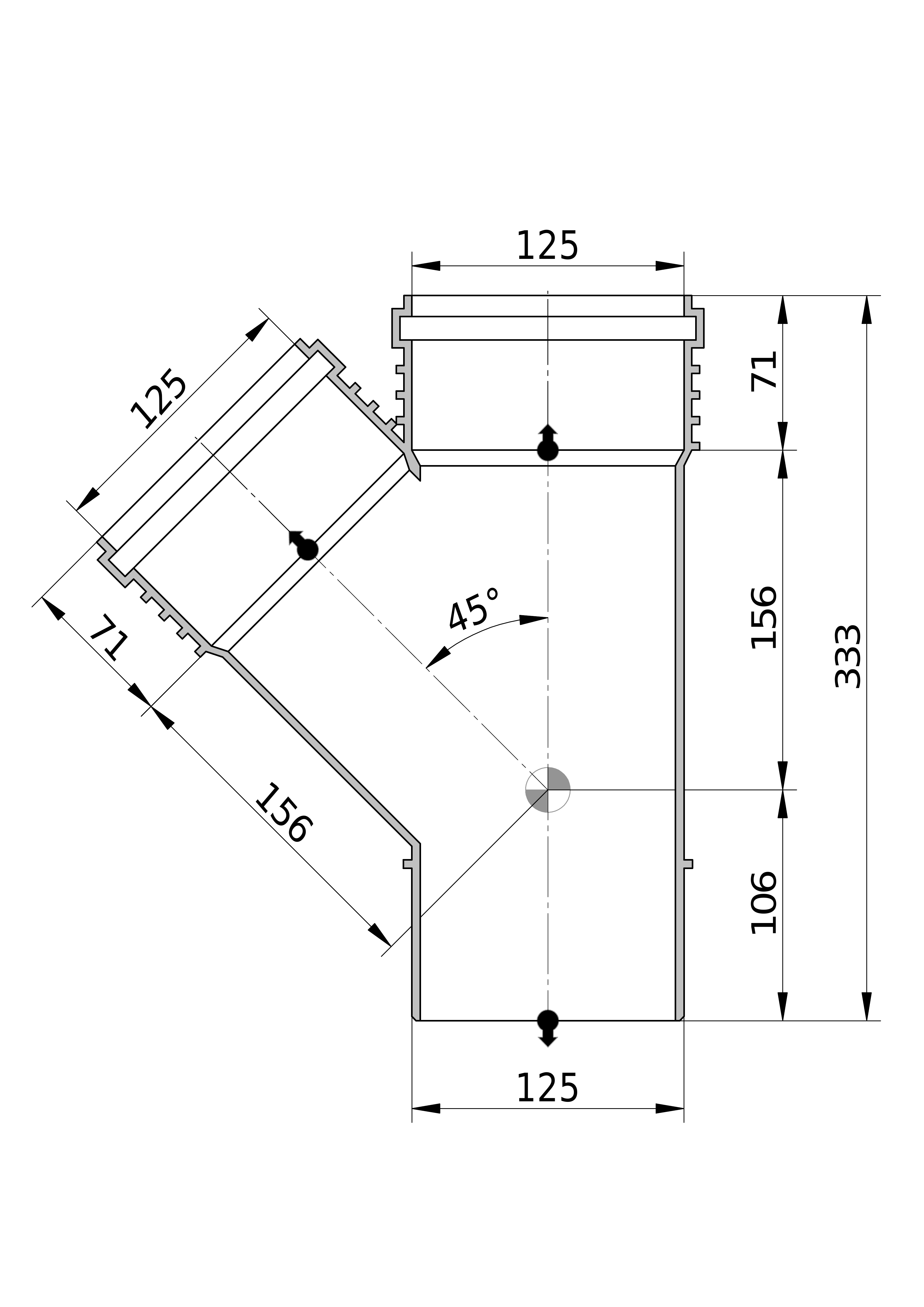 - Uitwendige buisdiameter aansluiting 3: 125 mm