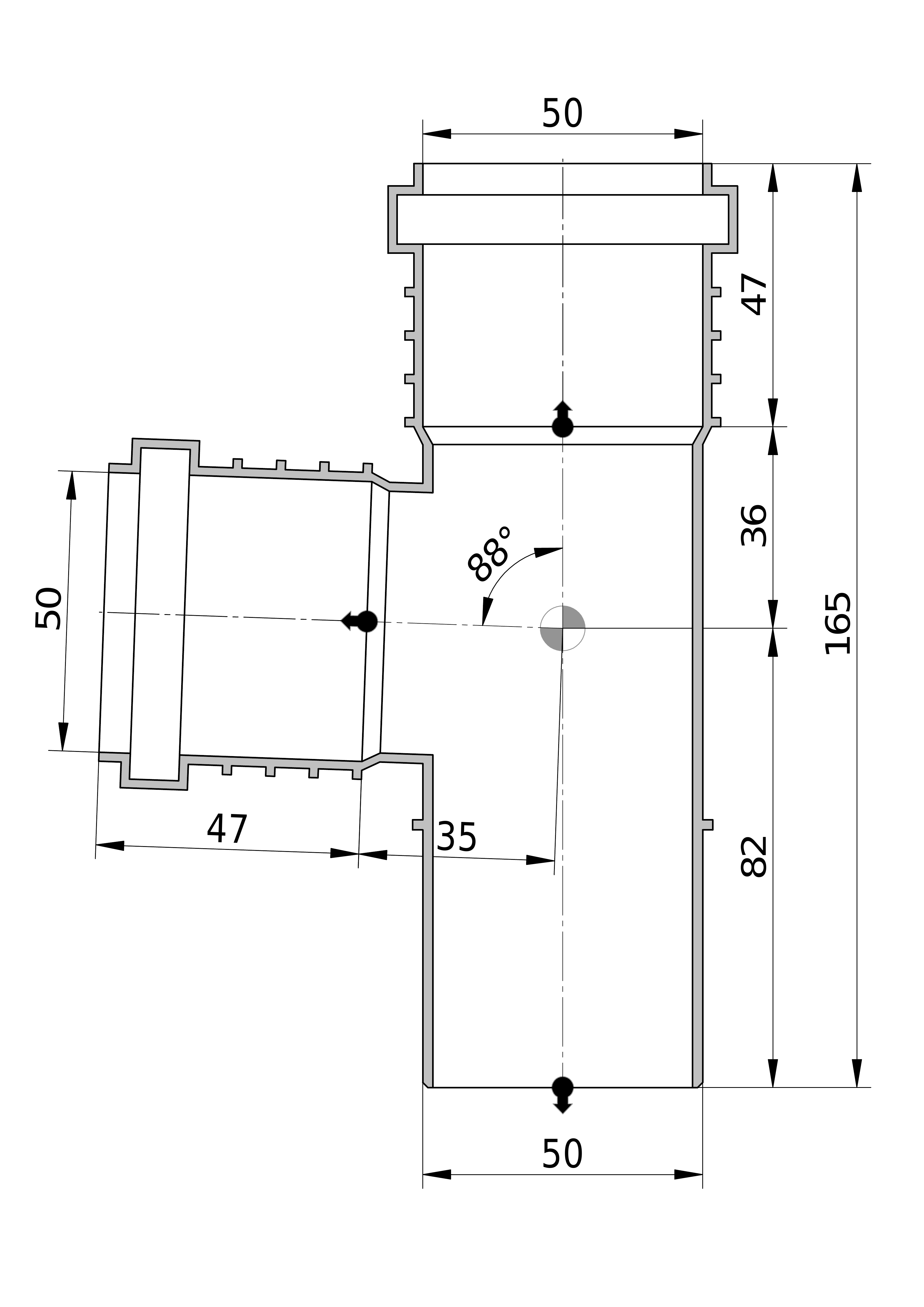 - Uitwendige buisdiameter aansluiting 1: 50 mm