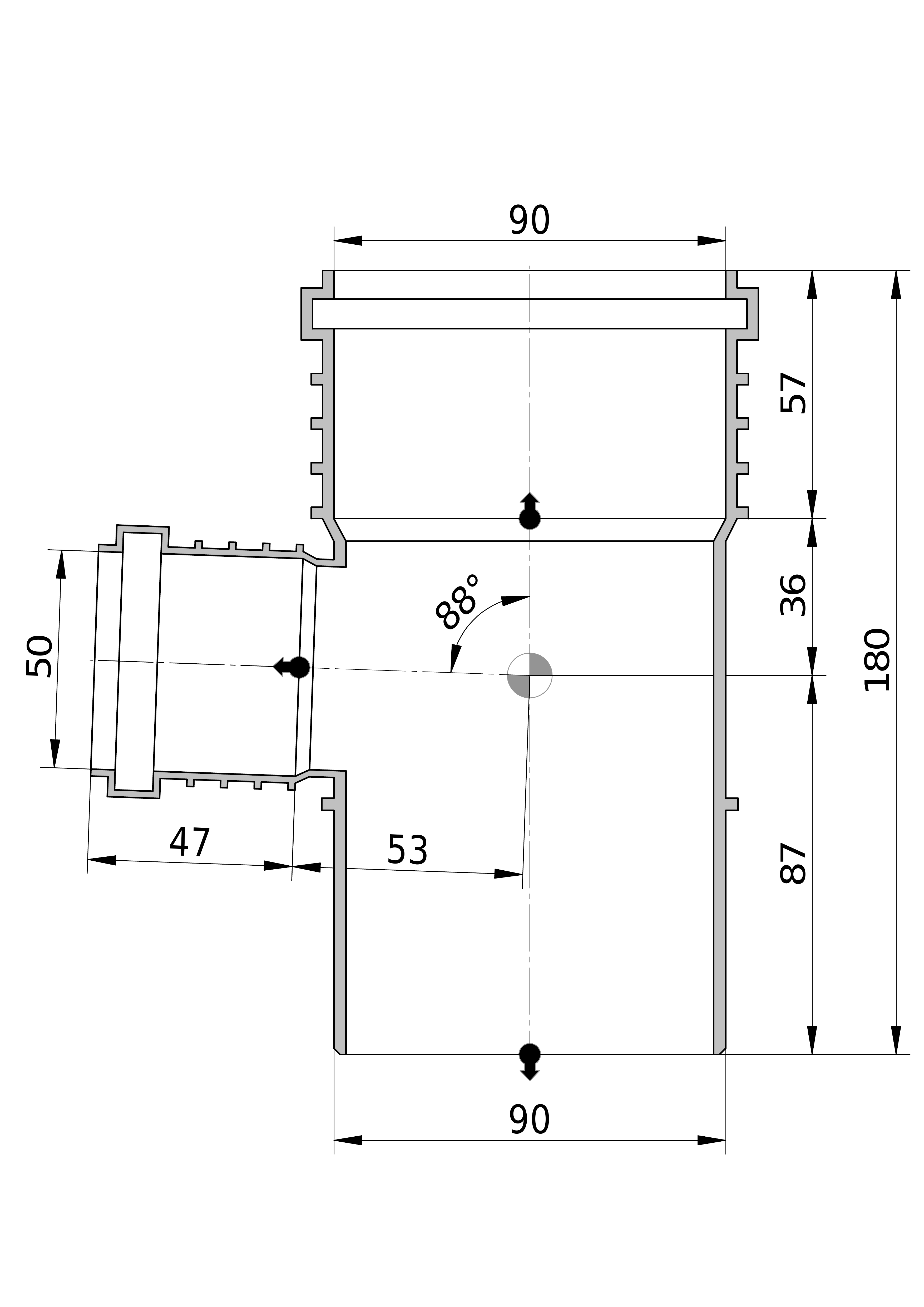 - Uitwendige buisdiameter aansluiting 2: 90 mm