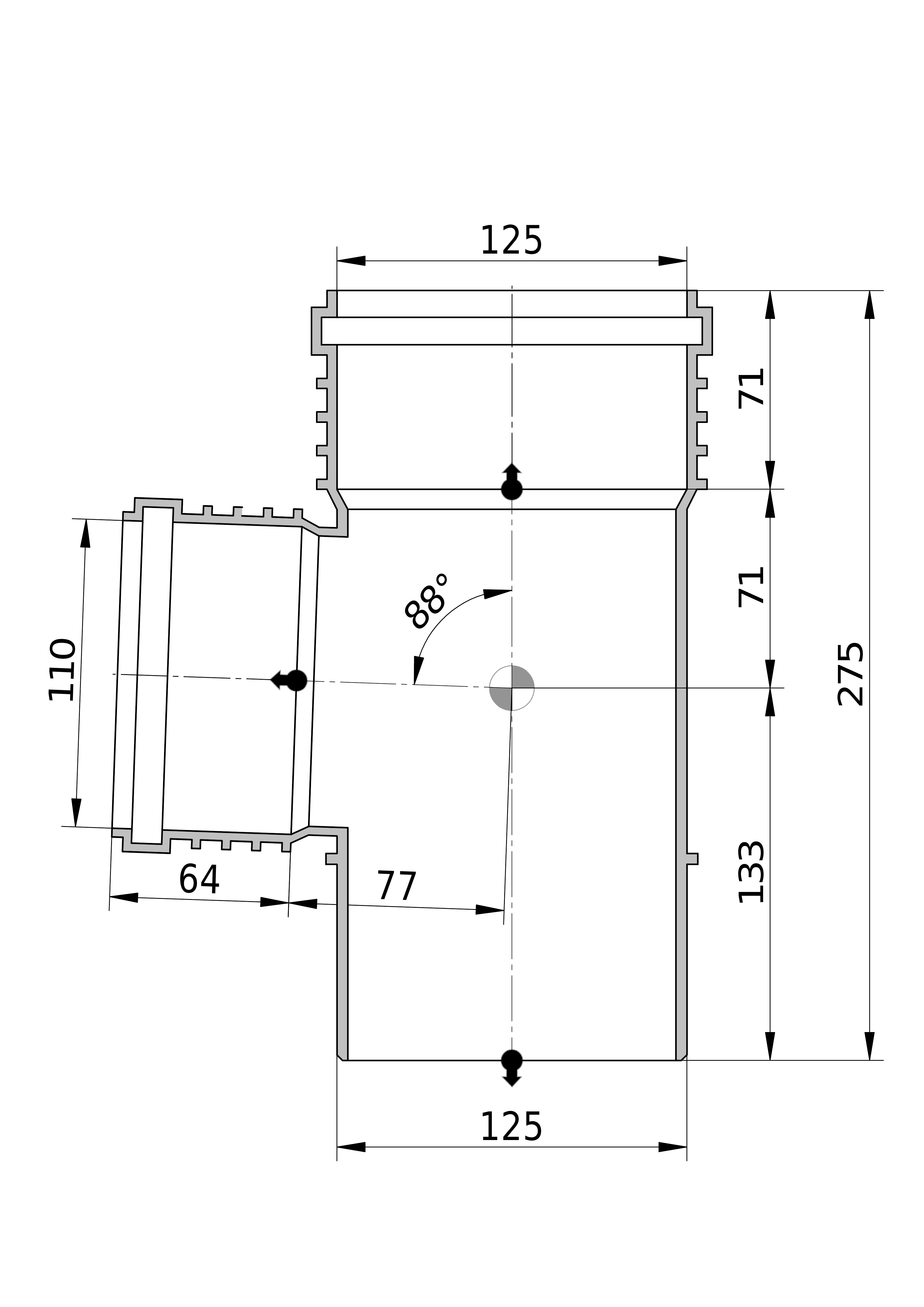 - Uitwendige buisdiameter aansluiting 2: 125 mm