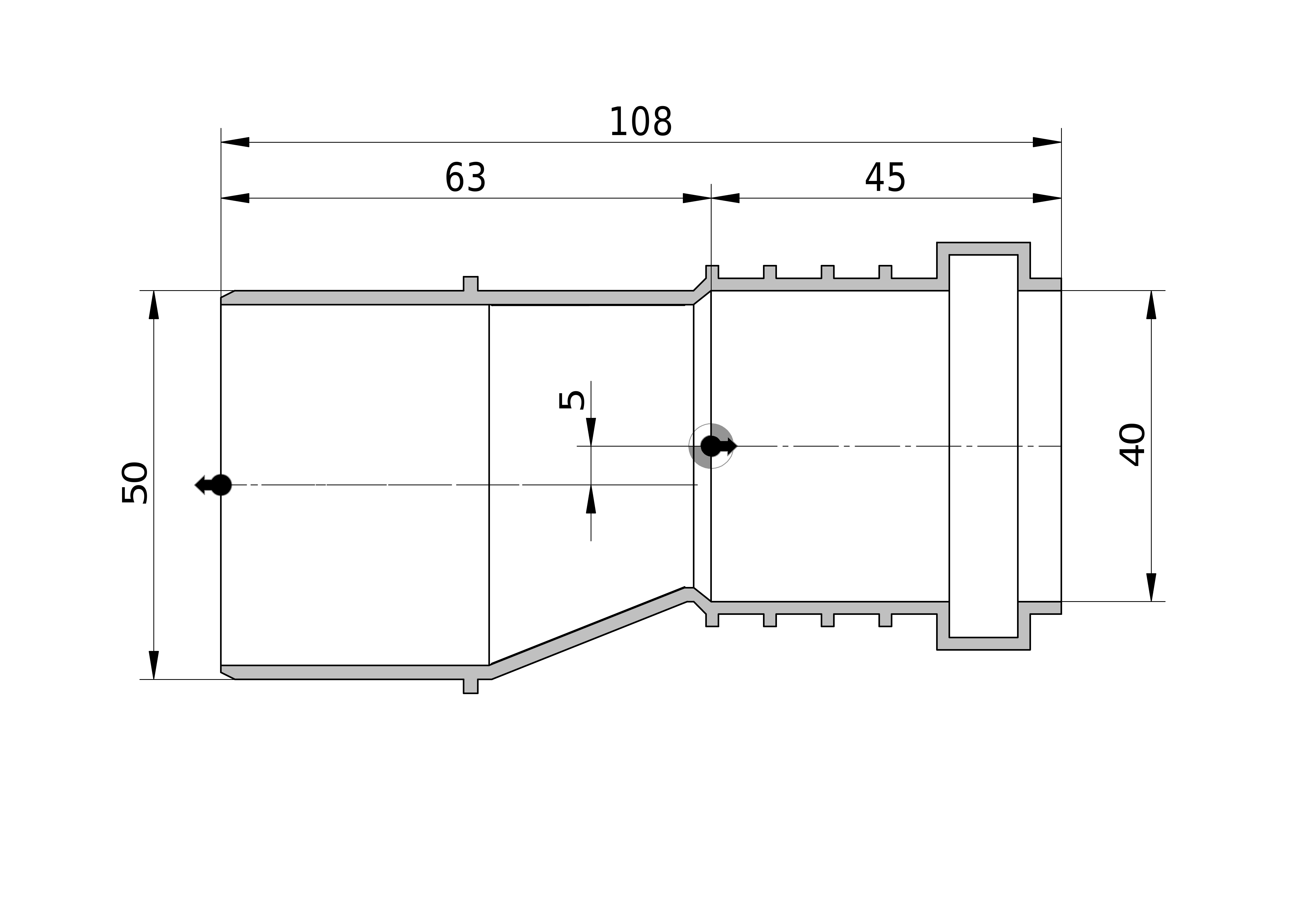 - Uitwendige buisdiameter aansluiting 1: 40 mm