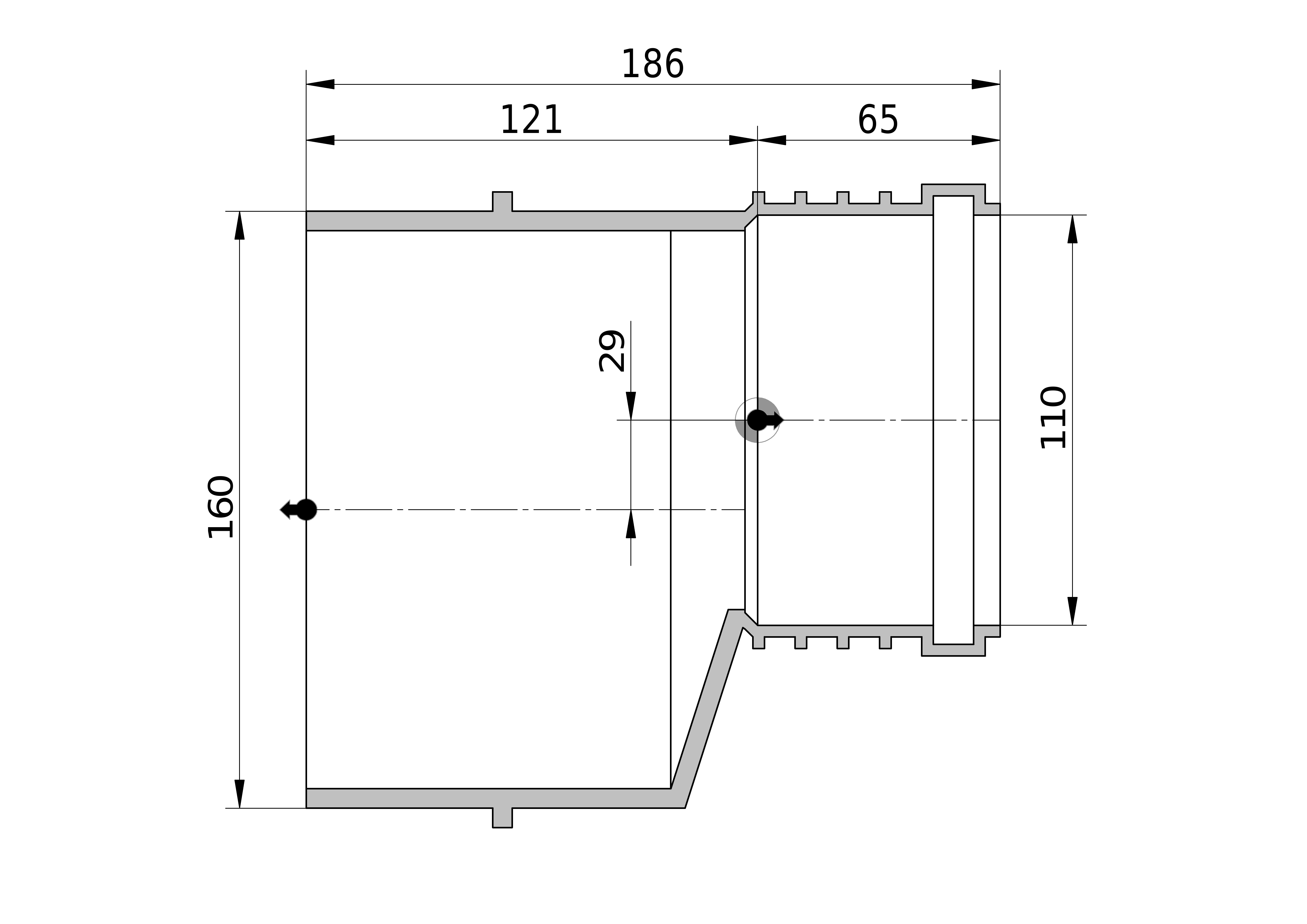 • Uitwendige buisdiameter aansluiting 2: 160 mm