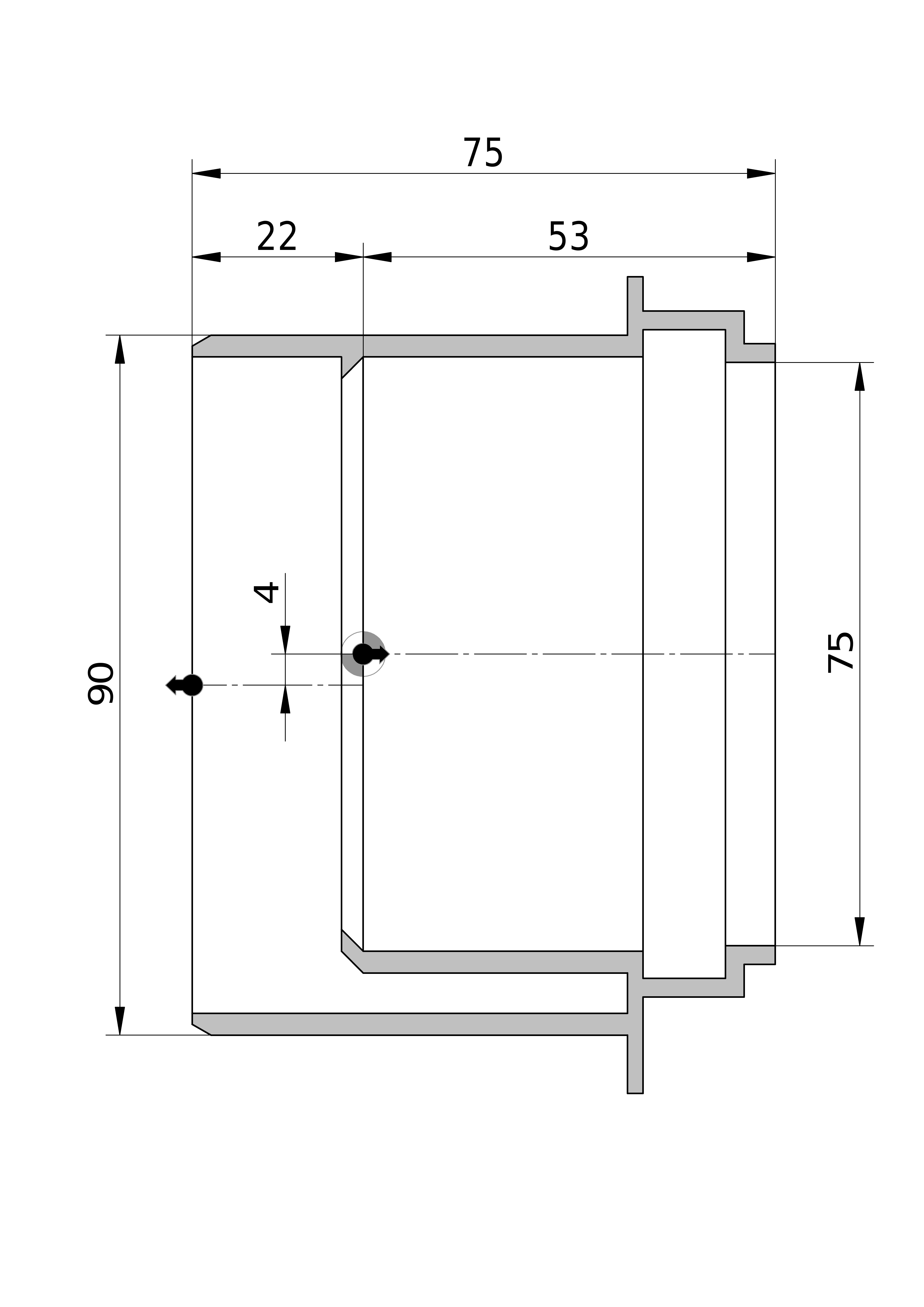 • Uitwendige buisdiameter aansluiting 1: 75 mm
