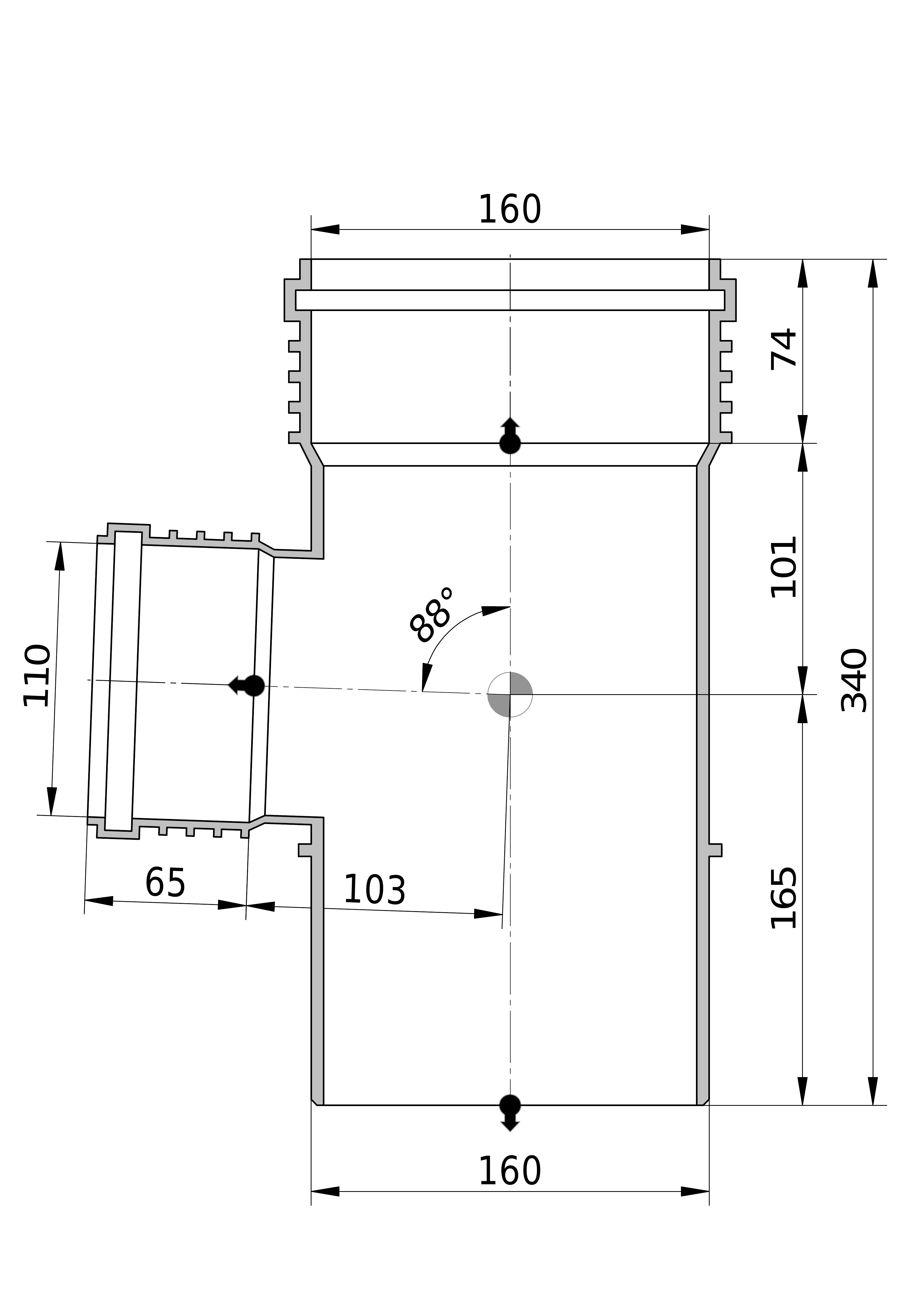 - Uitwendige buisdiameter aansluiting 2: 160 mm