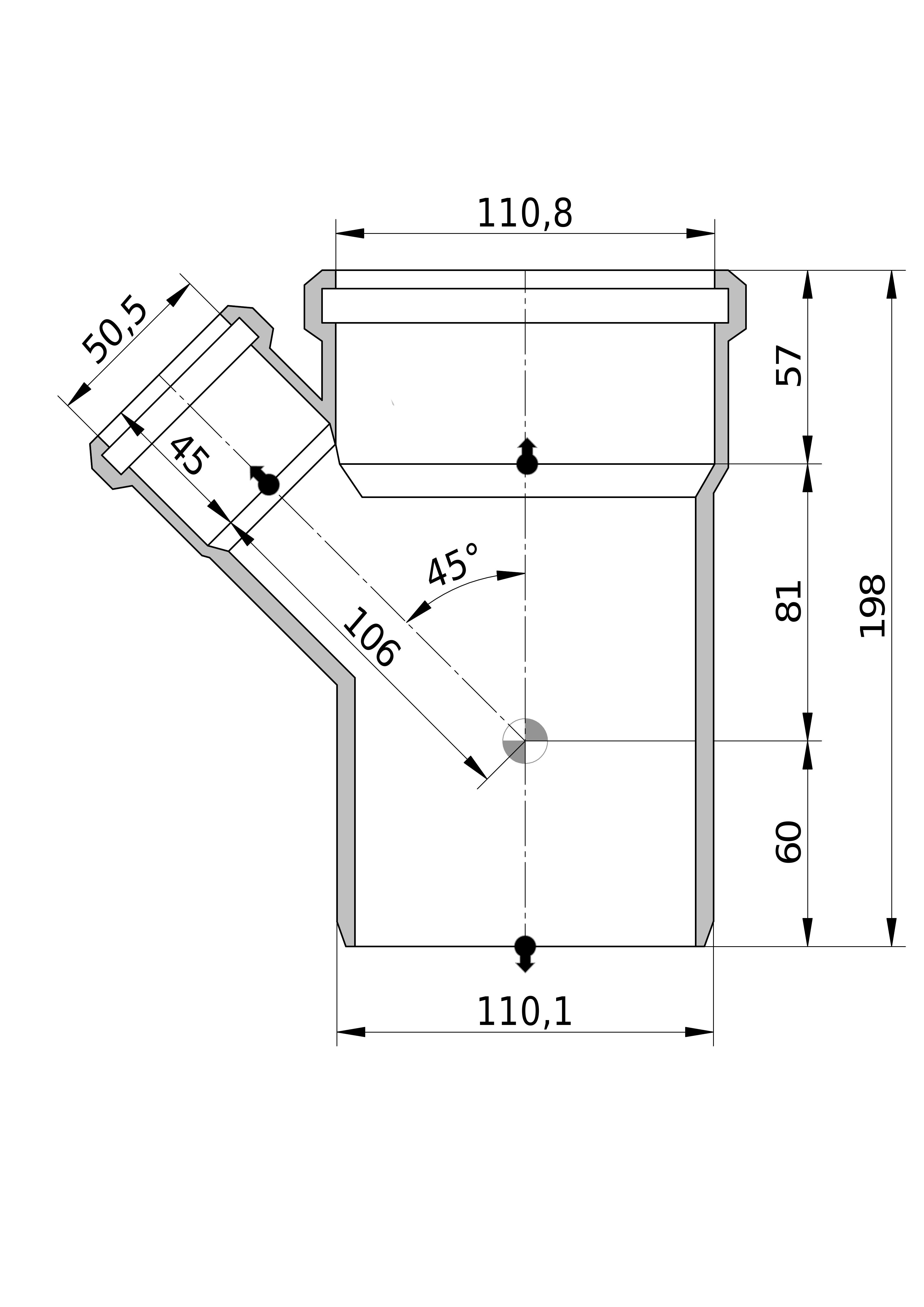• Uitwendige buisdiameter aansluiting 1: 110 mm