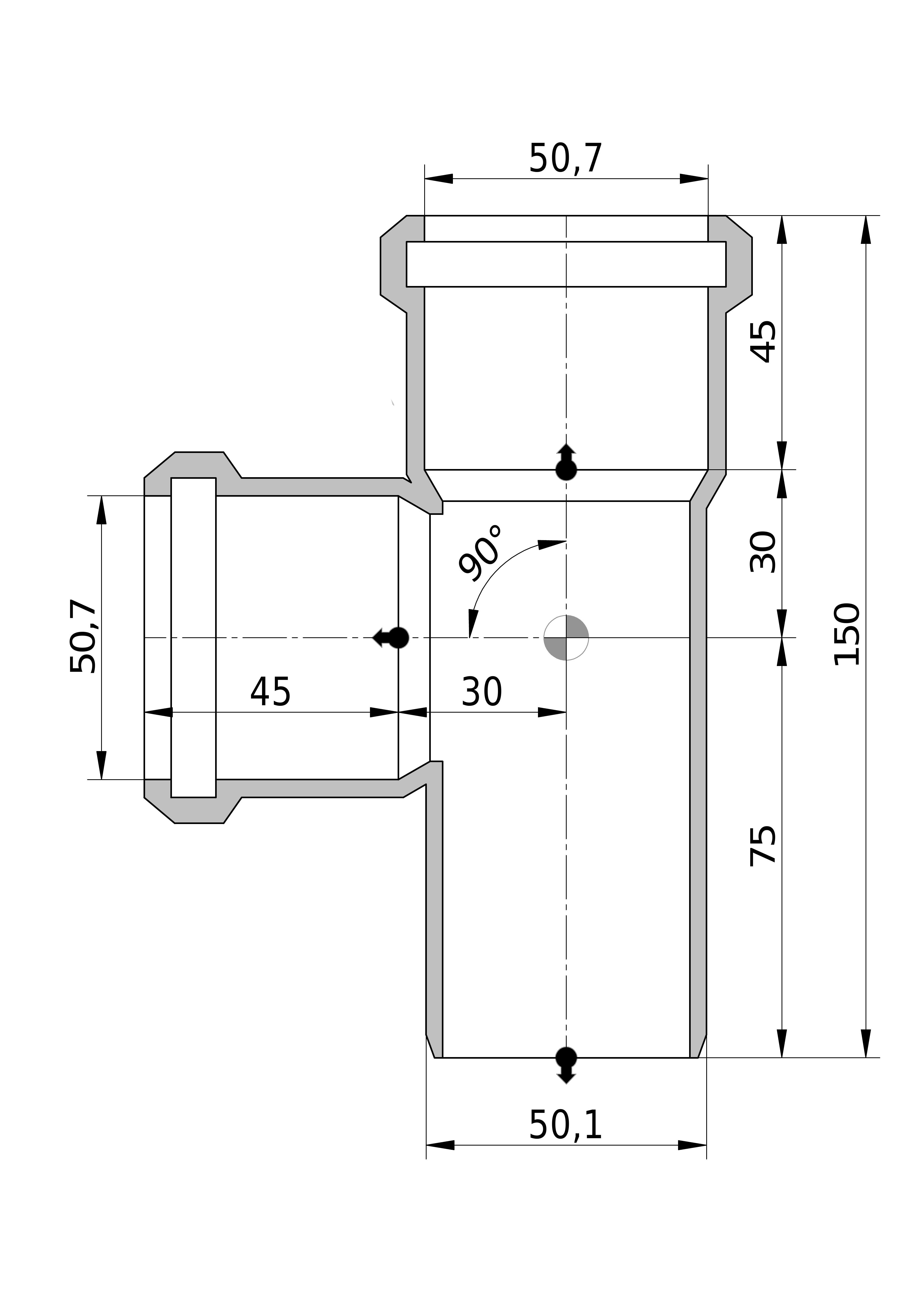 • Uitwendige buisdiameter aansluiting 1: 50 mm