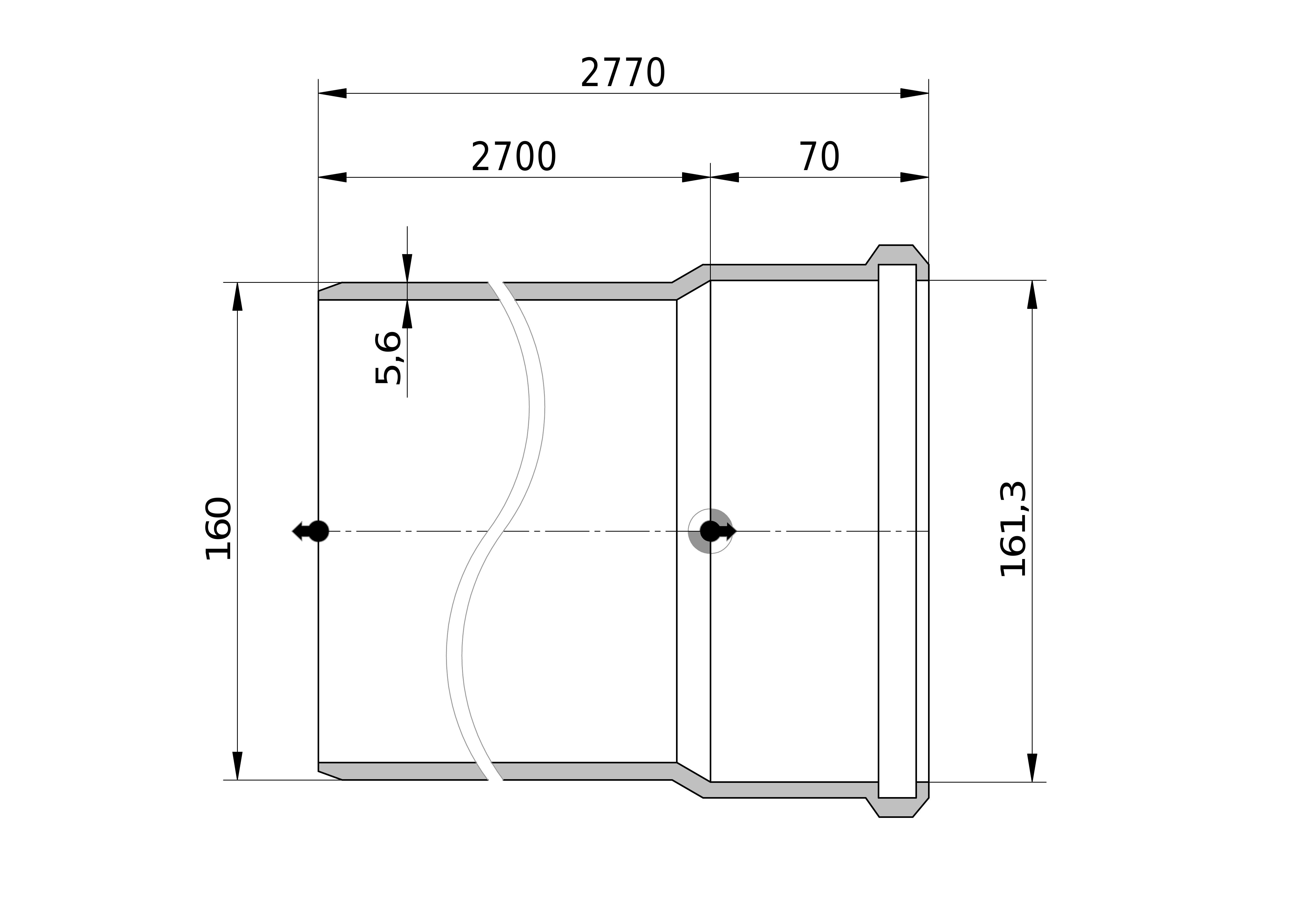 - Uitwendige diameter mantelbuis: 183,9 mm