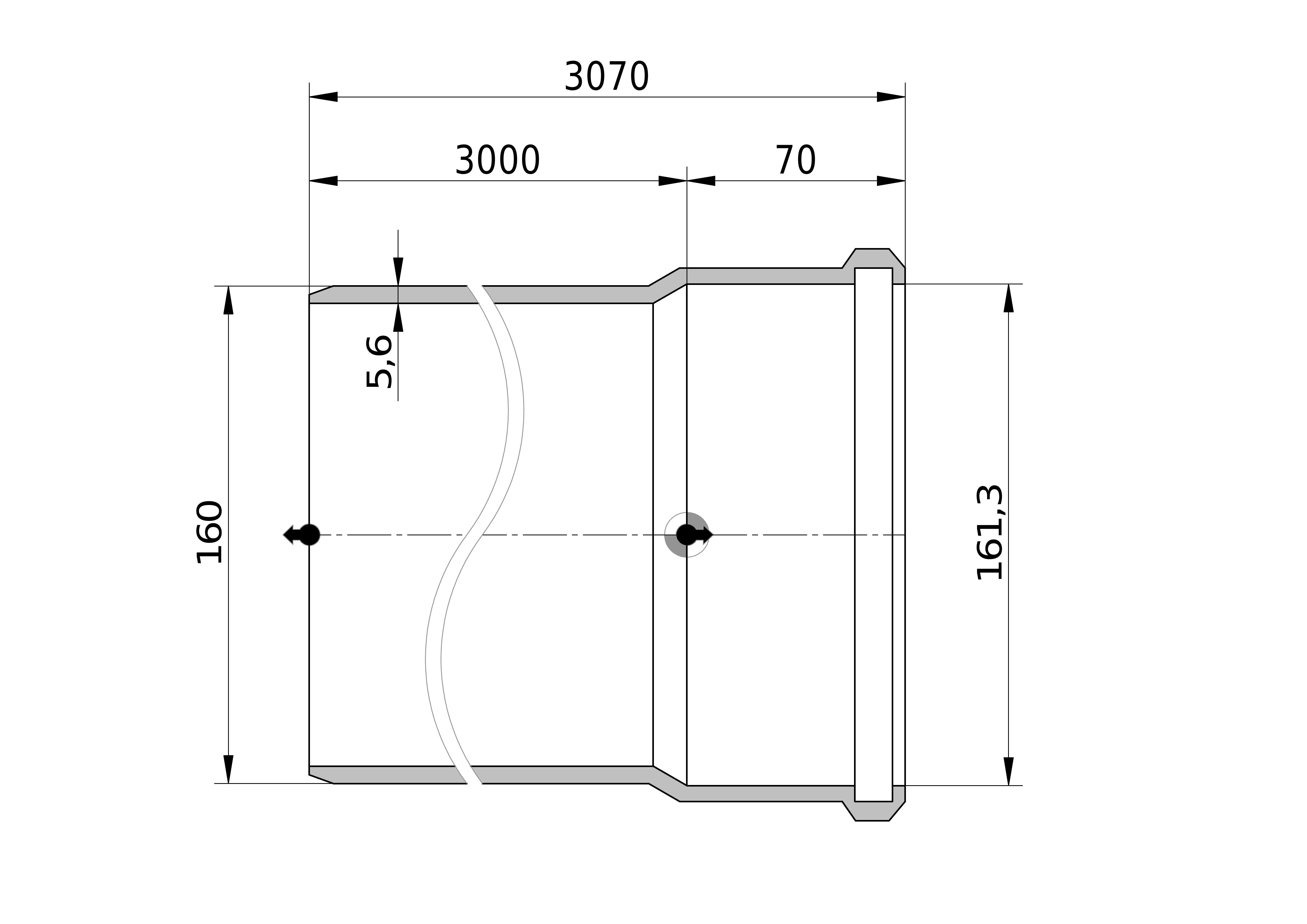 - Uitwendige diameter mantelbuis: 183,9 mm