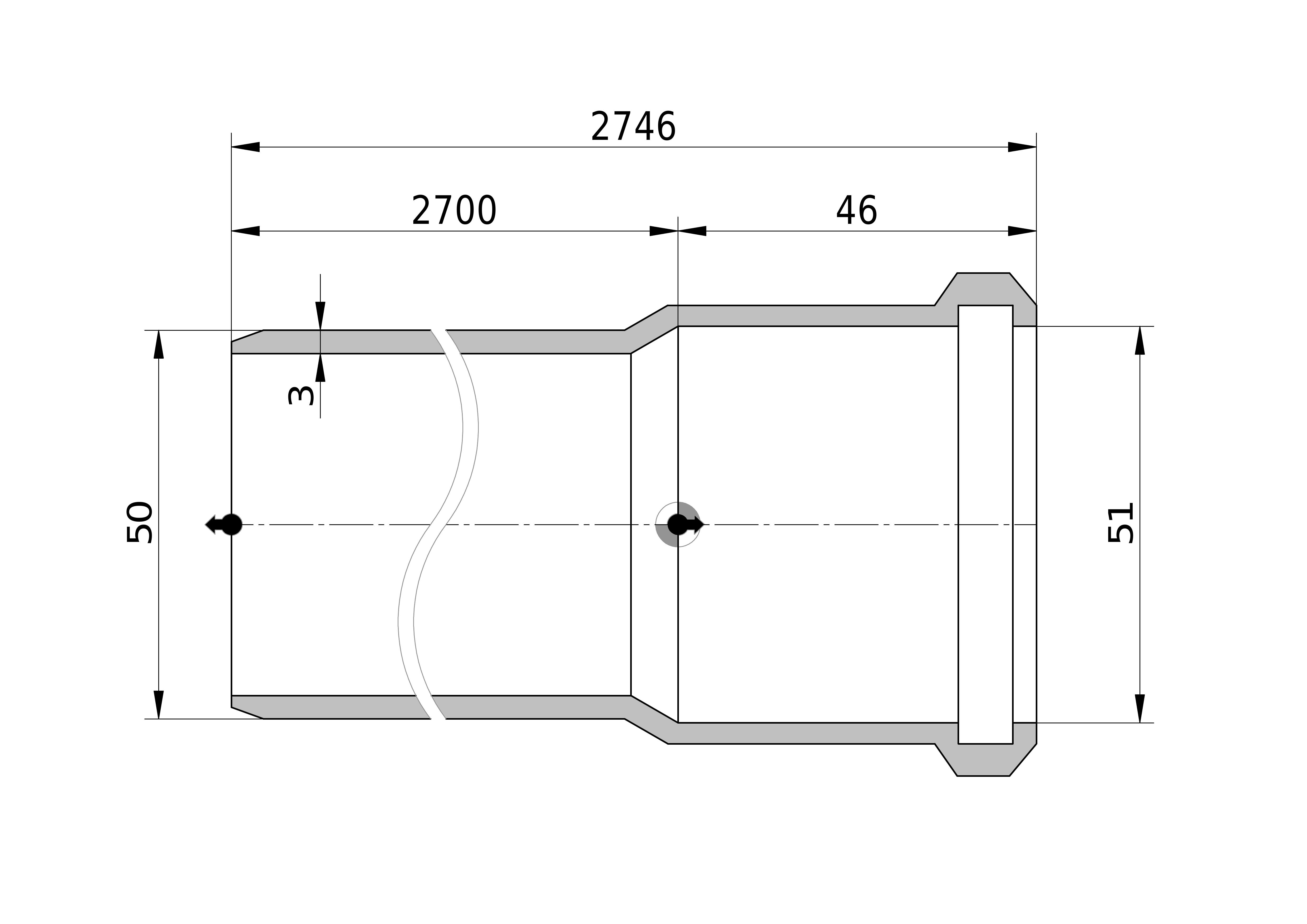 - Uitwendige diameter mantelbuis: 64,7 mm