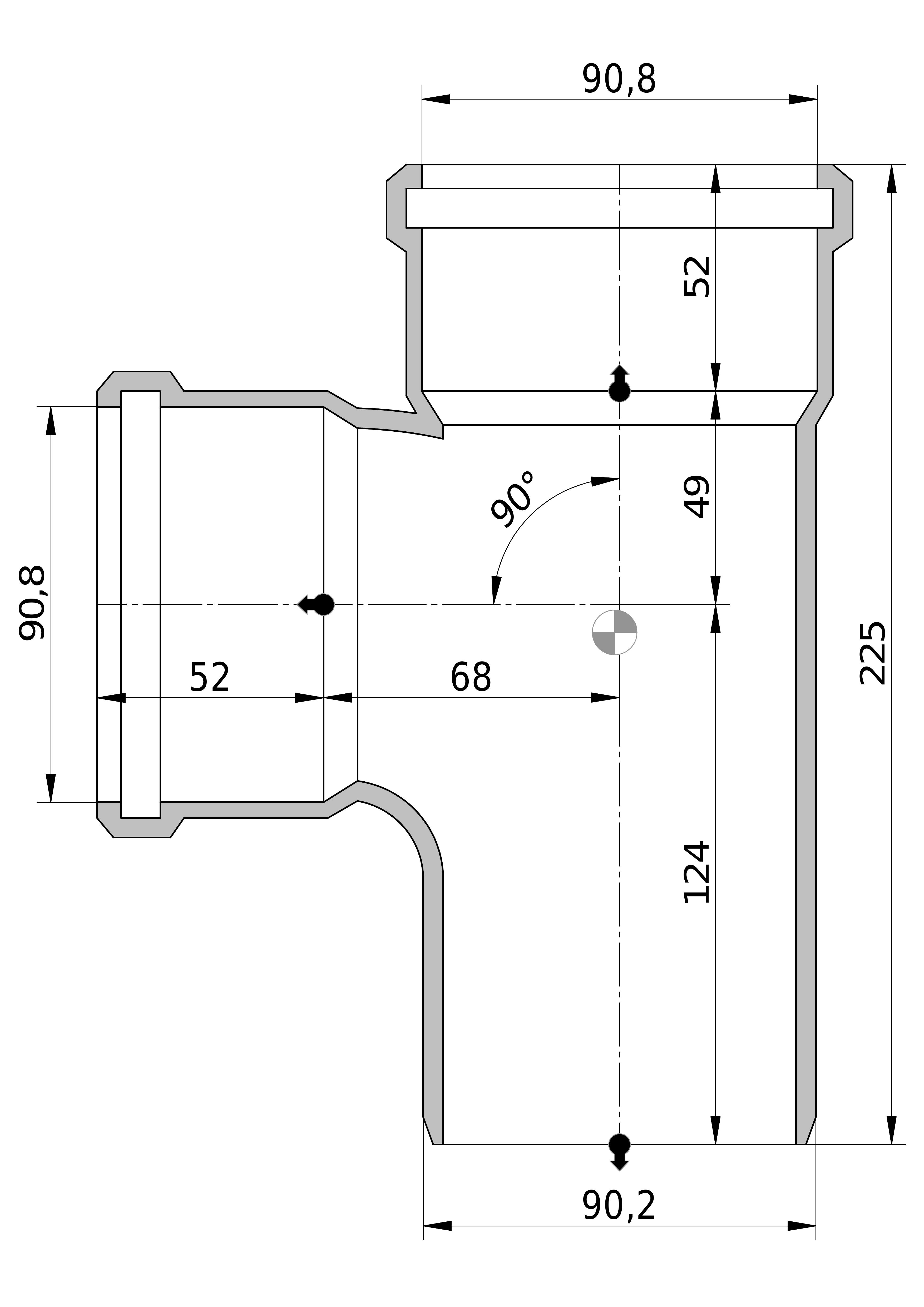 • Uitwendige buisdiameter aansluiting 3: 90 mm
