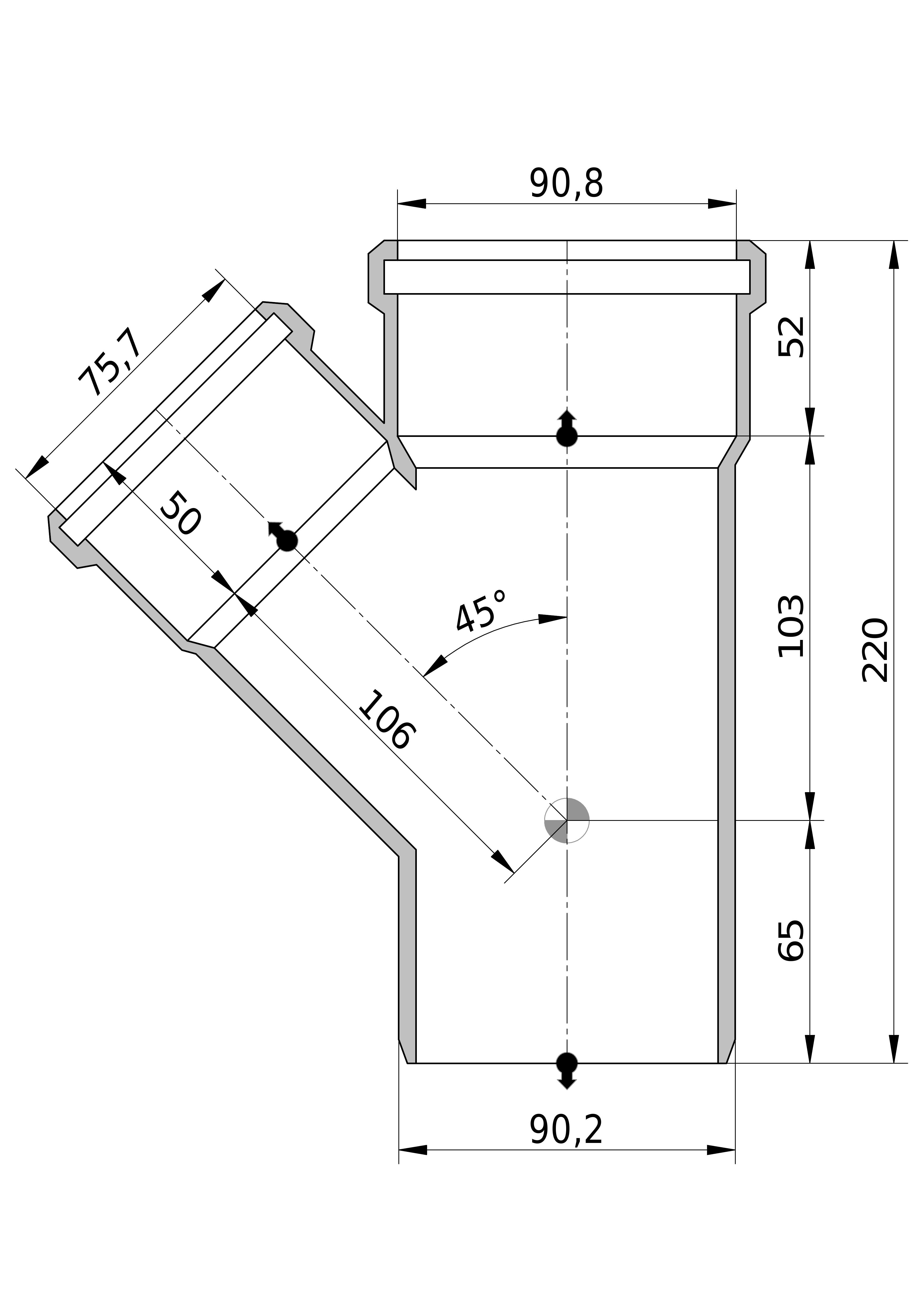 - Uitwendige buisdiameter aansluiting 2: 75 mm