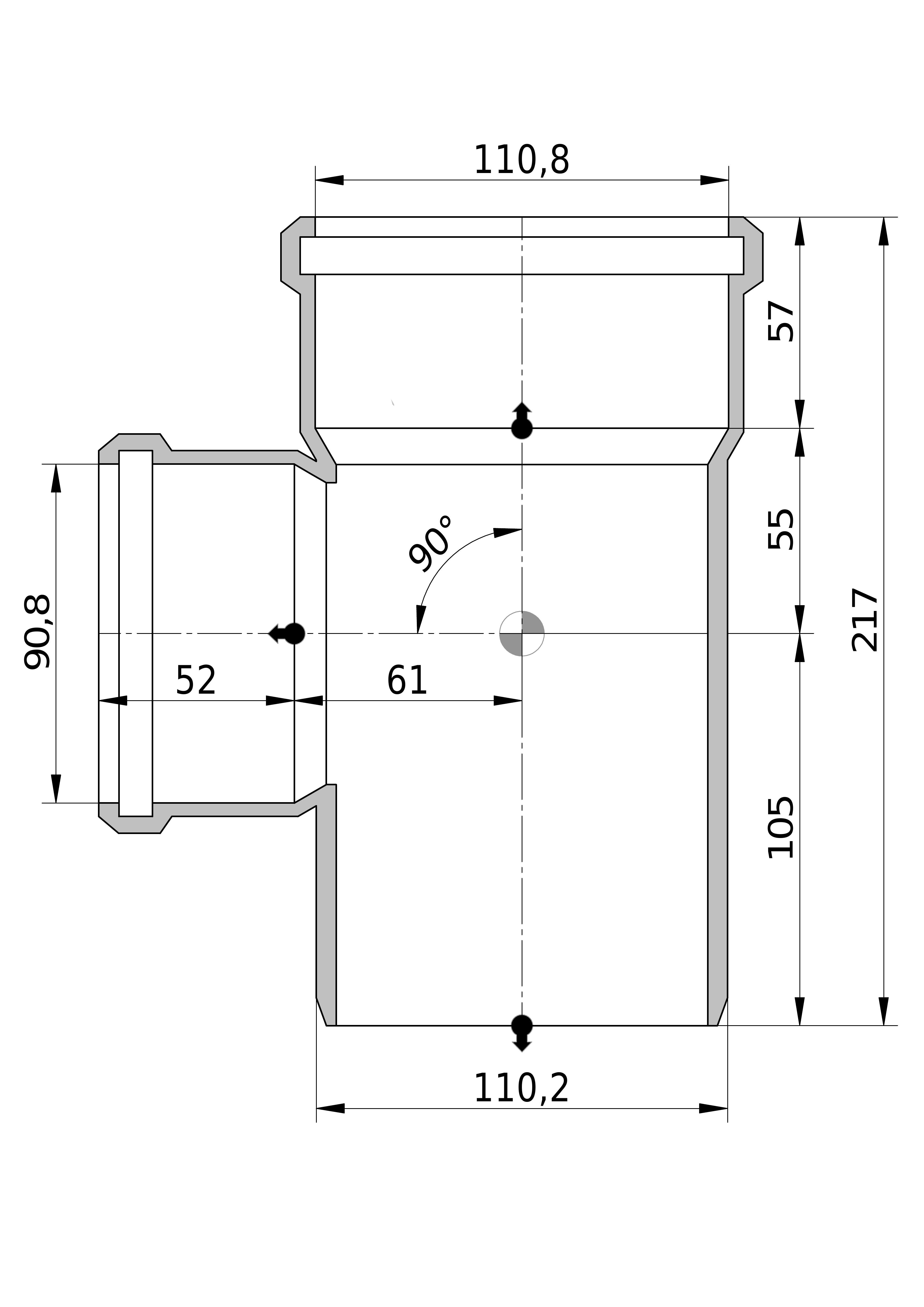 - Uitwendige buisdiameter aansluiting 3: 110 mm