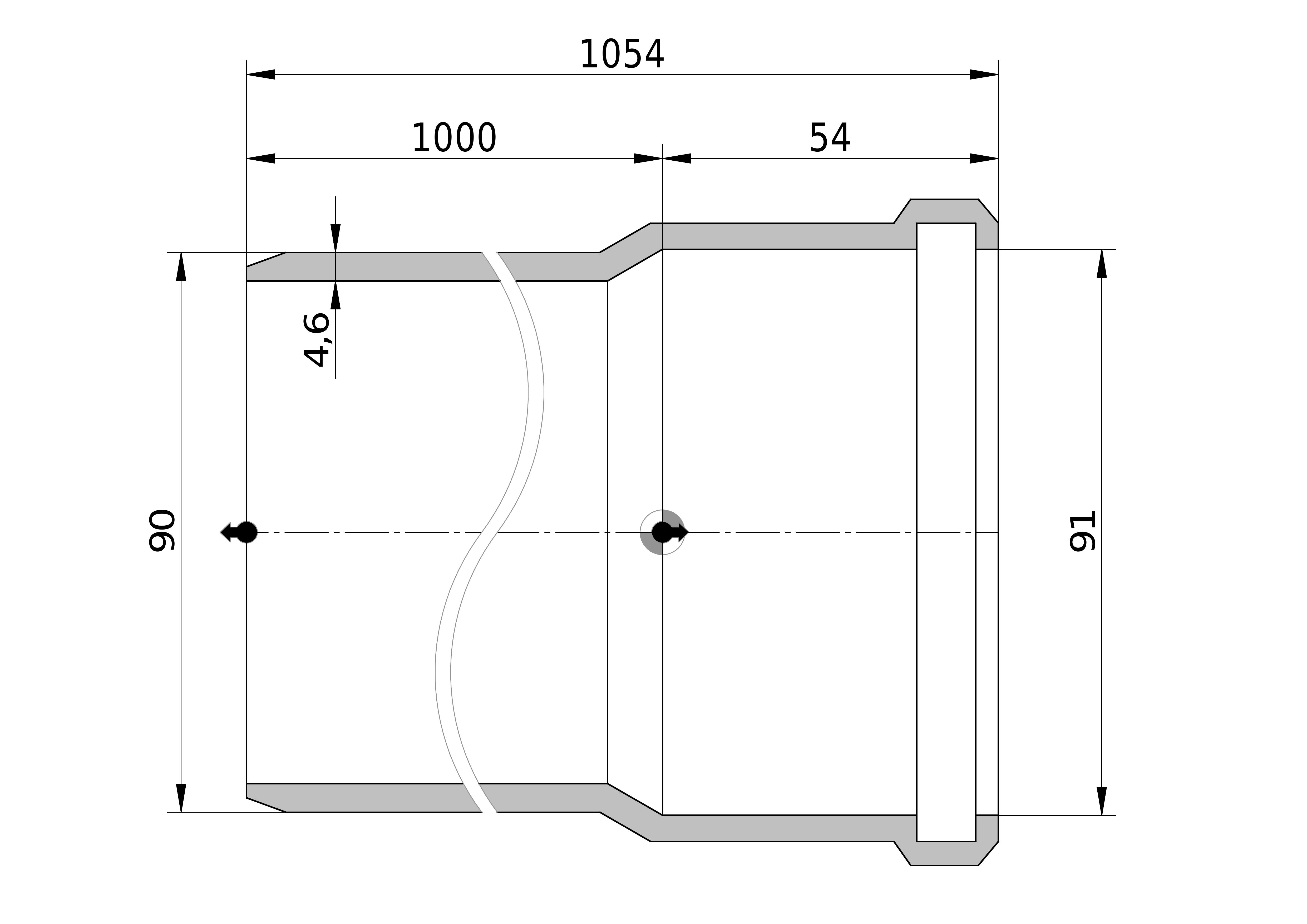 - Uitwendige diameter mantelbuis: 107,1 mm
