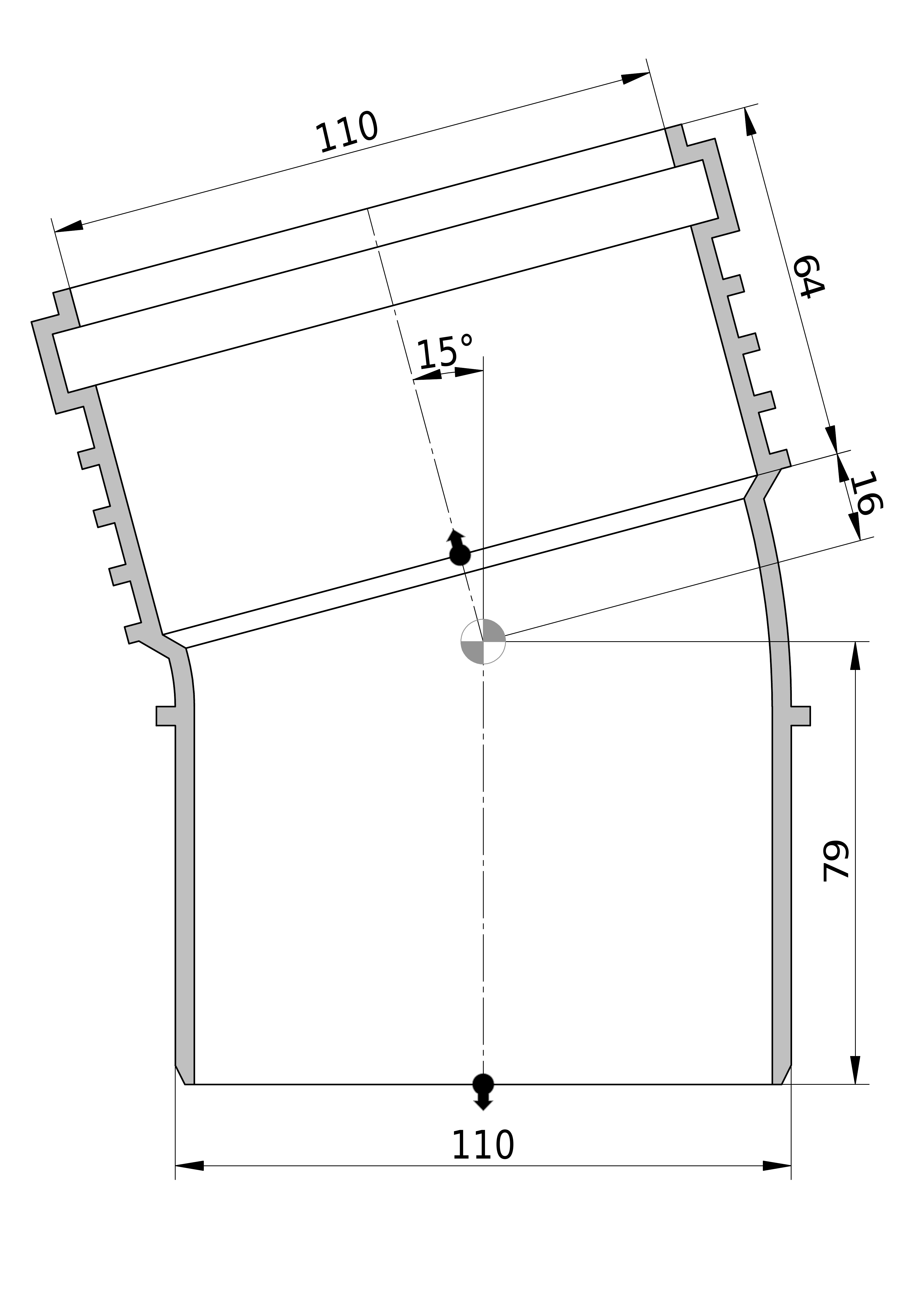 • Uitwendige buisdiameter aansluiting 1: 110 mm