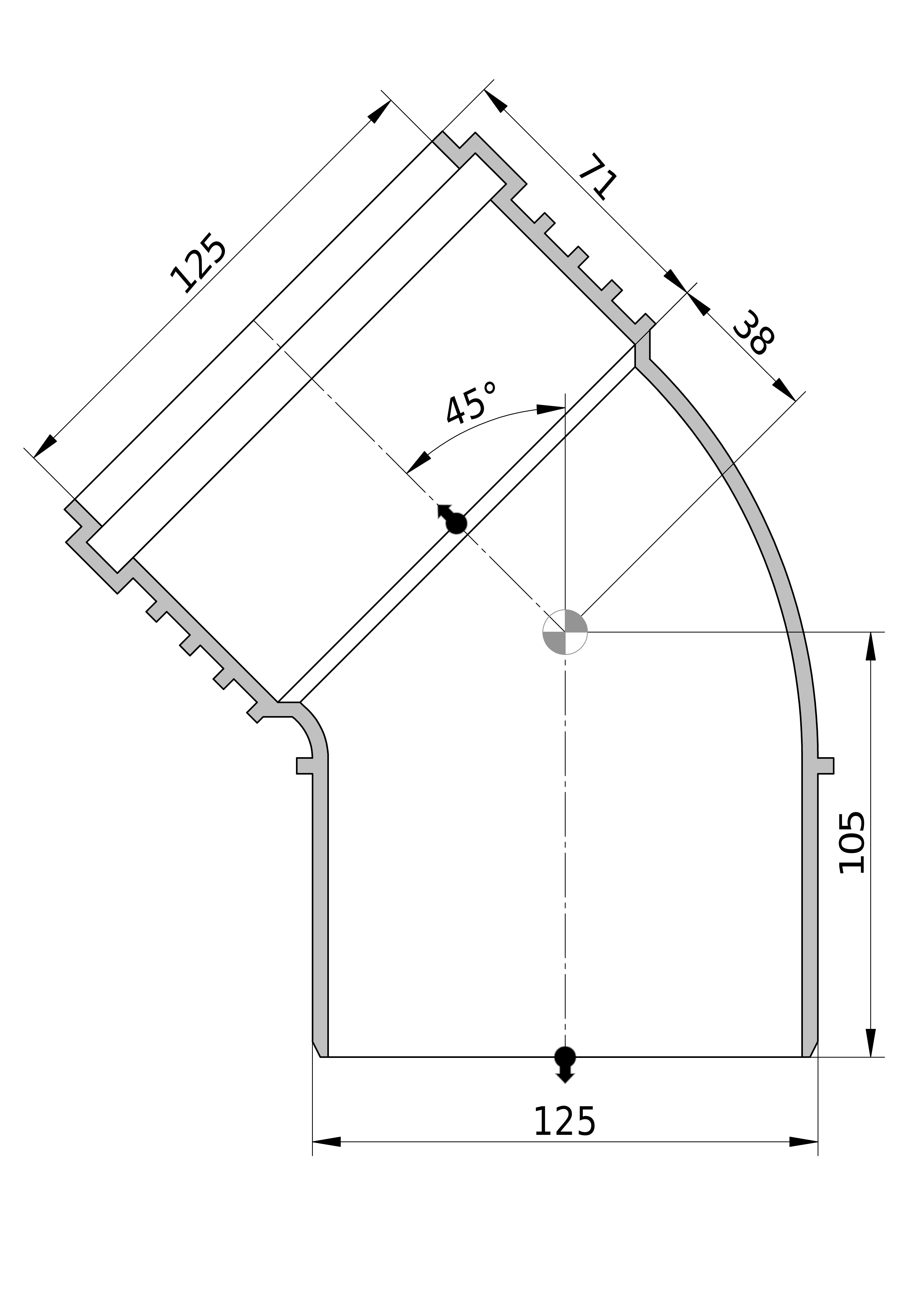 • Bochthoek: 45 °