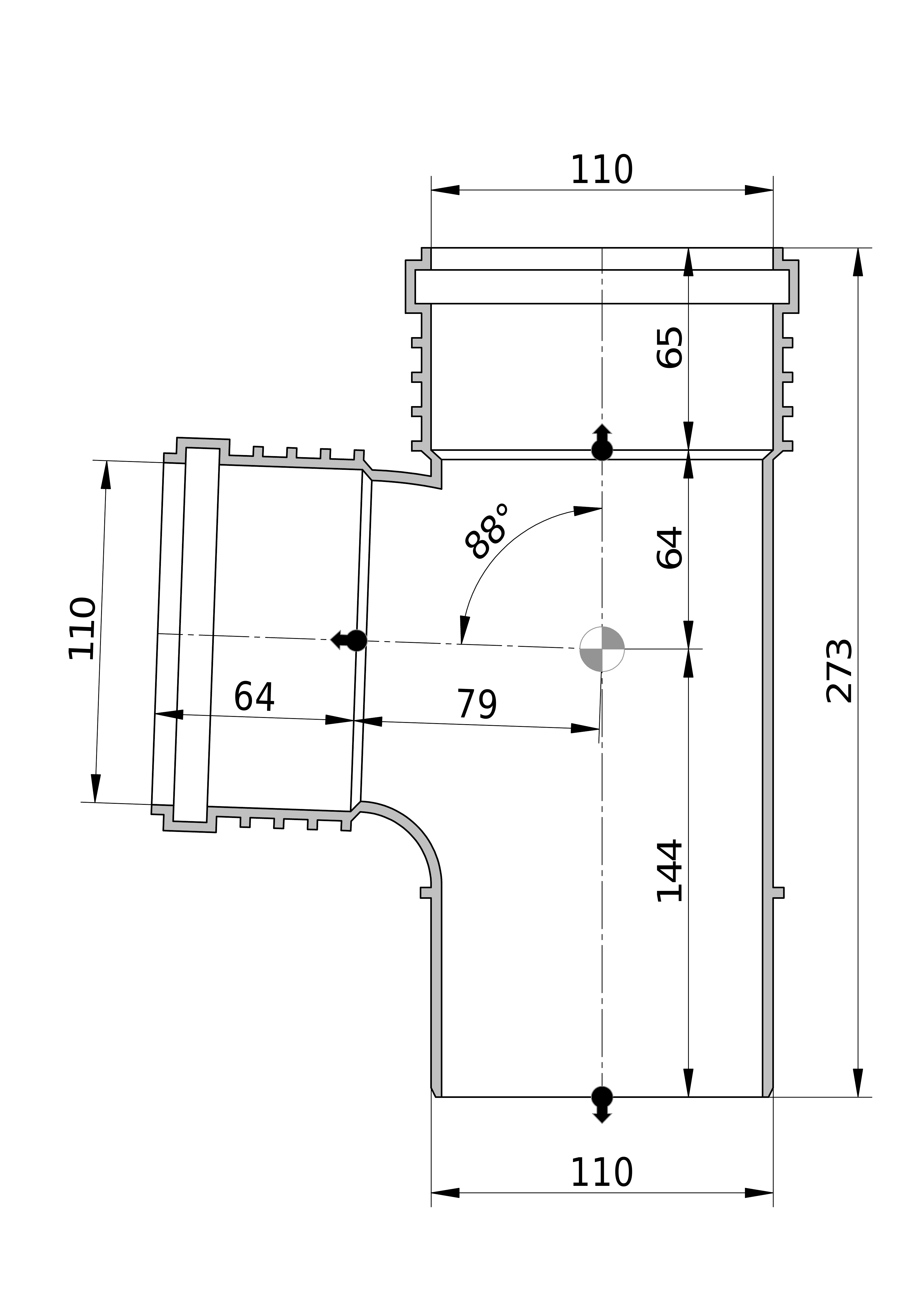 • Uitwendige buisdiameter aansluiting 3: 110 mm