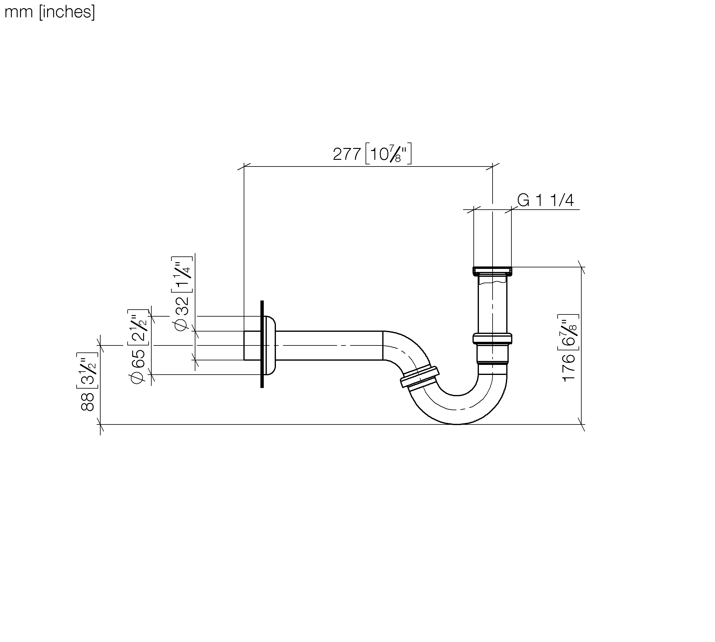 Overk. rond Bidet buissifon 1 1/4" messing geborsteld Dornbracht