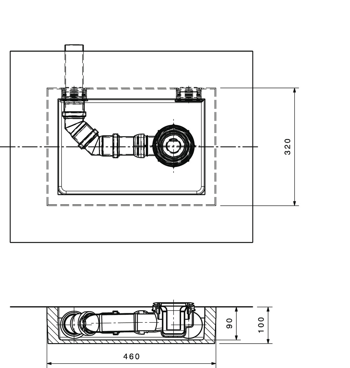 Ultra flat solid afvoerbox met douchesifon 46x32x10cm rechts Ideal Standard