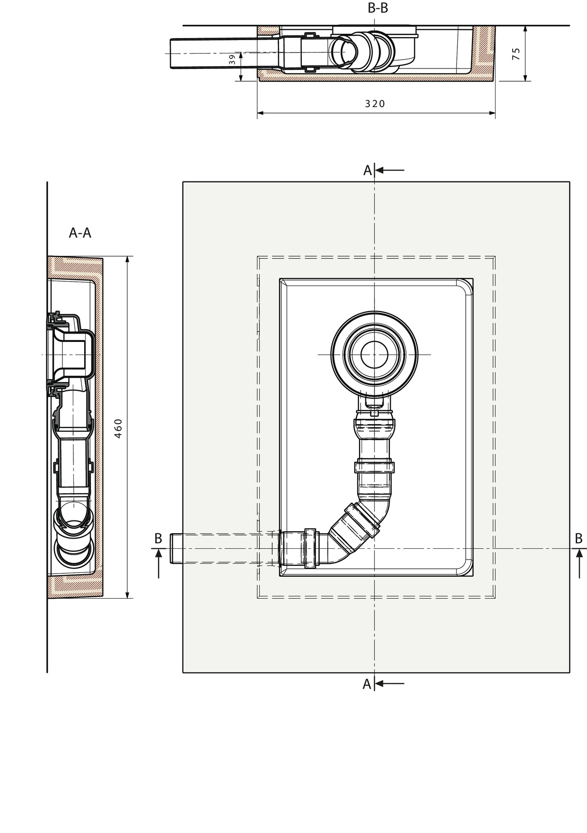 Ultra flat solid afvoerbox ondiep met douchesifon 46x32x7,5cm llinks Ideal Standard