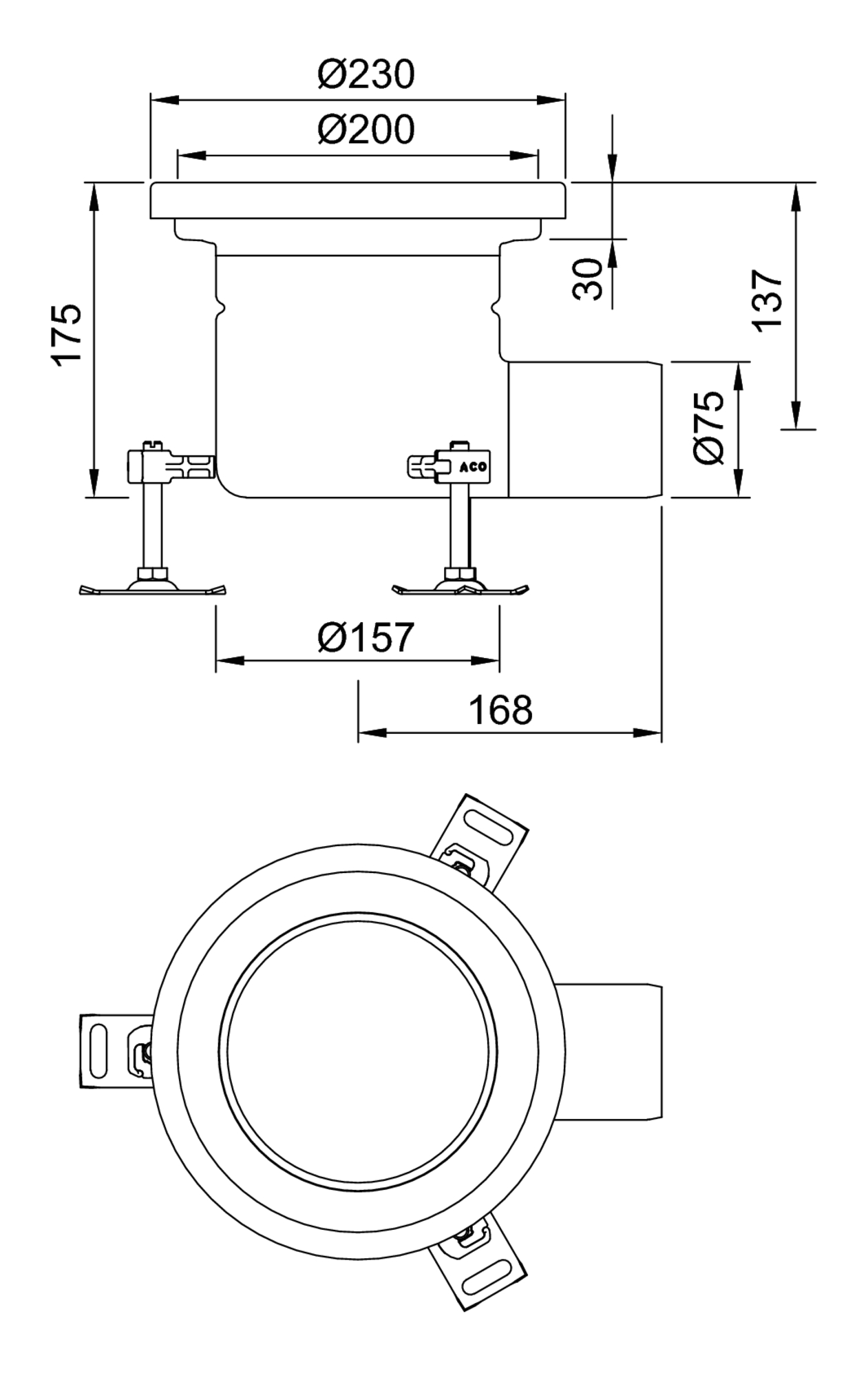 EG200/157/230 afvoerput vast 90º 446747 ACO