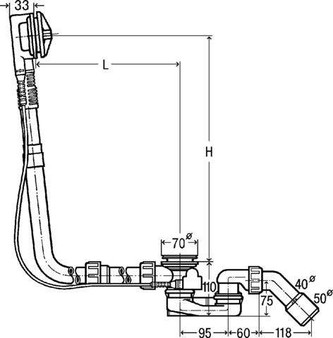- Aansluiting sifon-afvoerplug: Wartelmoer