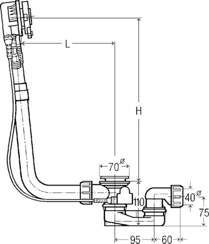 - Uitwendige buisdiameter afvoer: 40 mm