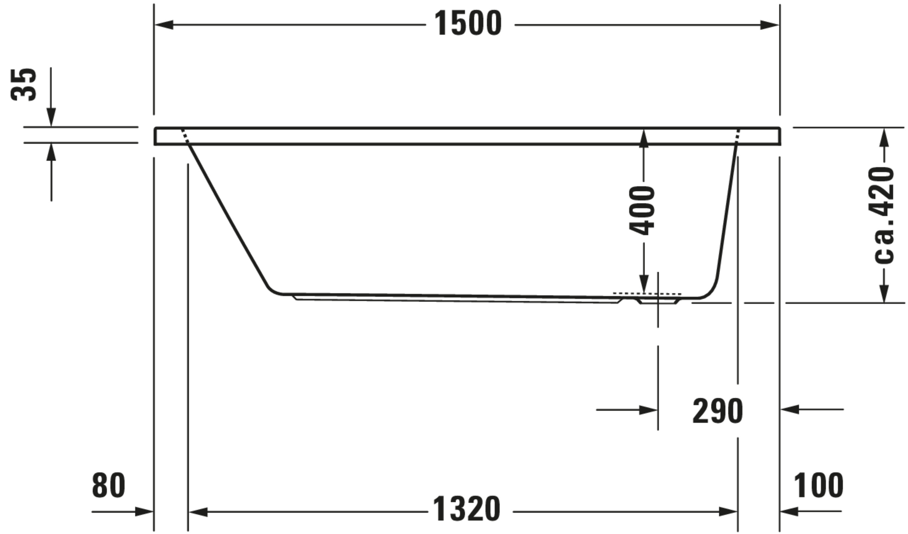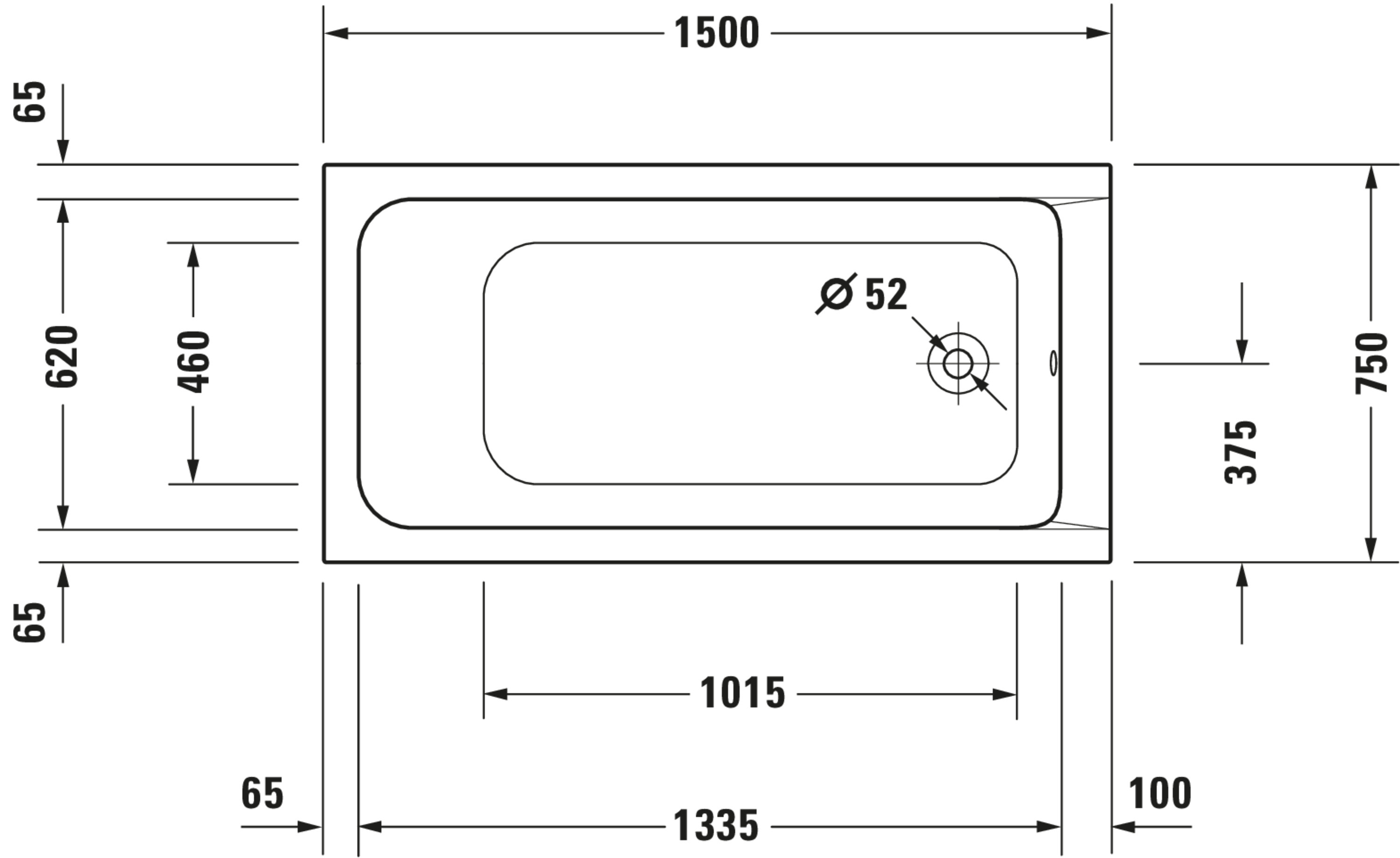 Whirlbad D-Code 1500x750 mm wit Afvoer voetzijde, Jet Projec Duravit